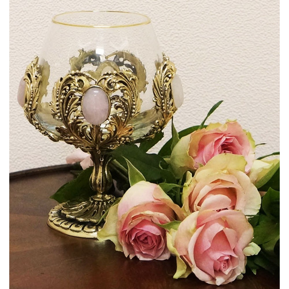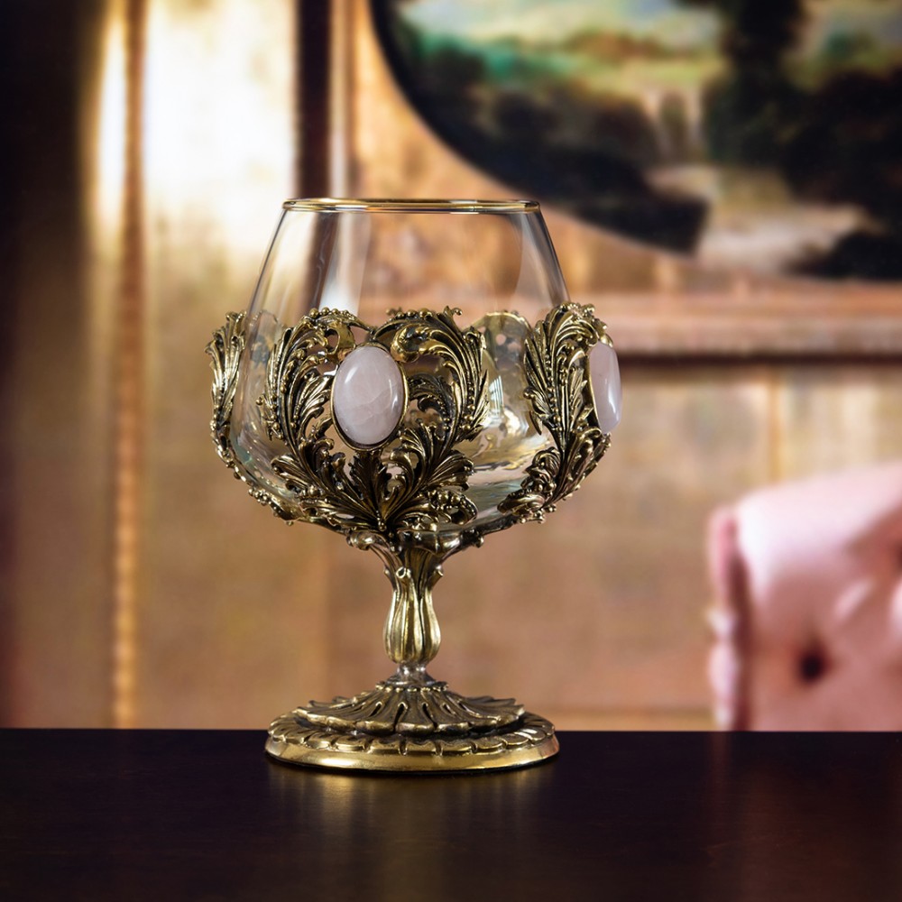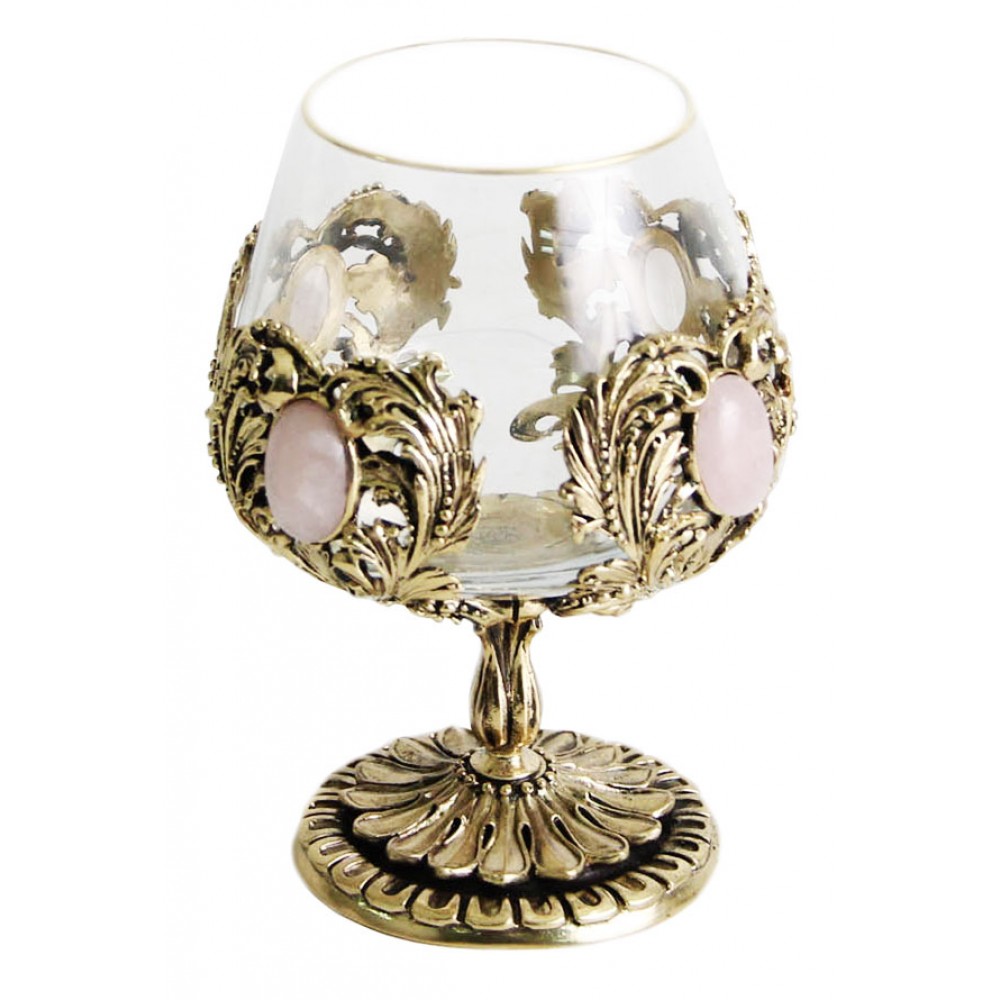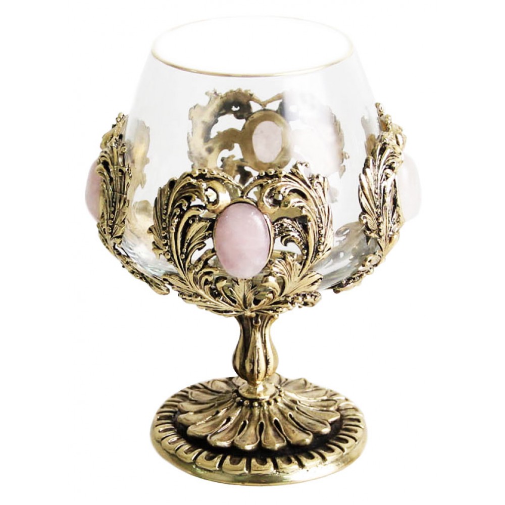 Бокал для коньяка с натуральным камнем Розовый кварц 420 мл в подарочной коробке