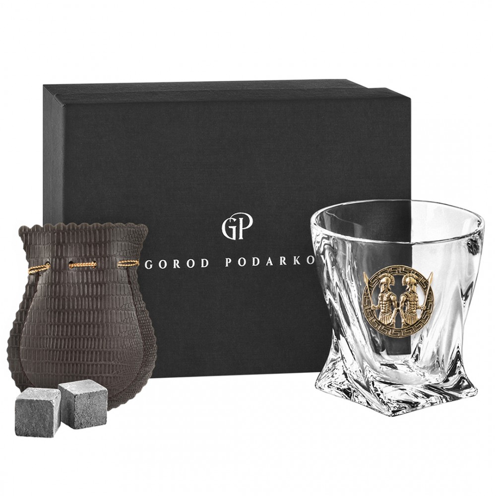 Бокал: стекло с золотым декорированием ,патинированная латунь ручная работа с эмалью,камни для виски (пищевой стеарит) |