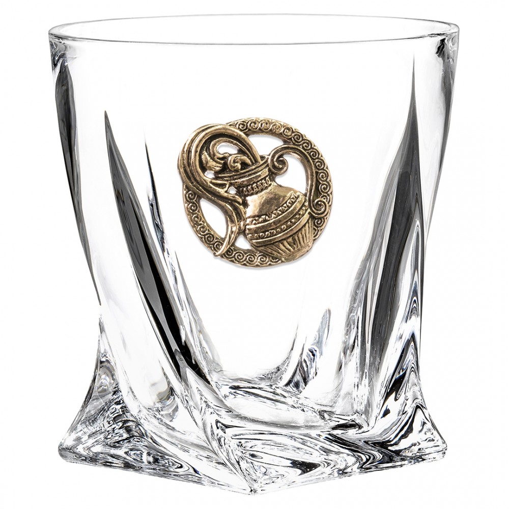Бокал: стекло с золотым декорированием ,патинированная латунь ручная работа с эмалью,камни для виски (пищевой стеарит) |