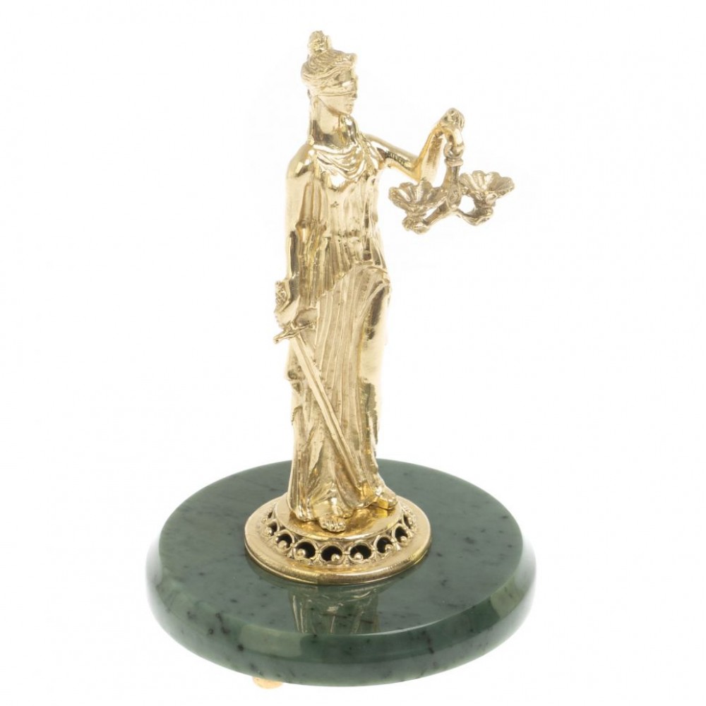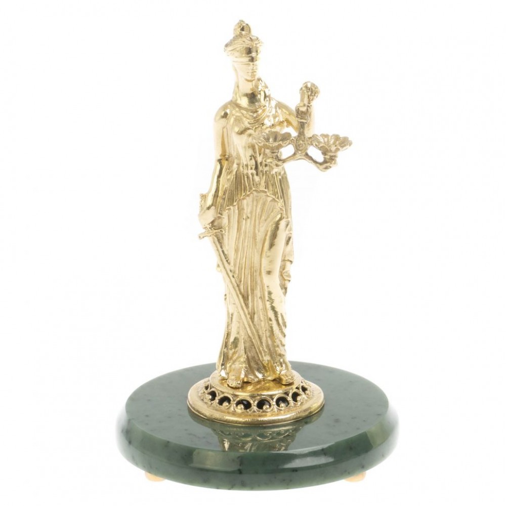 Бронзовая статуэтка "Фемида" на подставке из нефрита 10х10х15 см размером 10х10х15 см и весом 530 г.