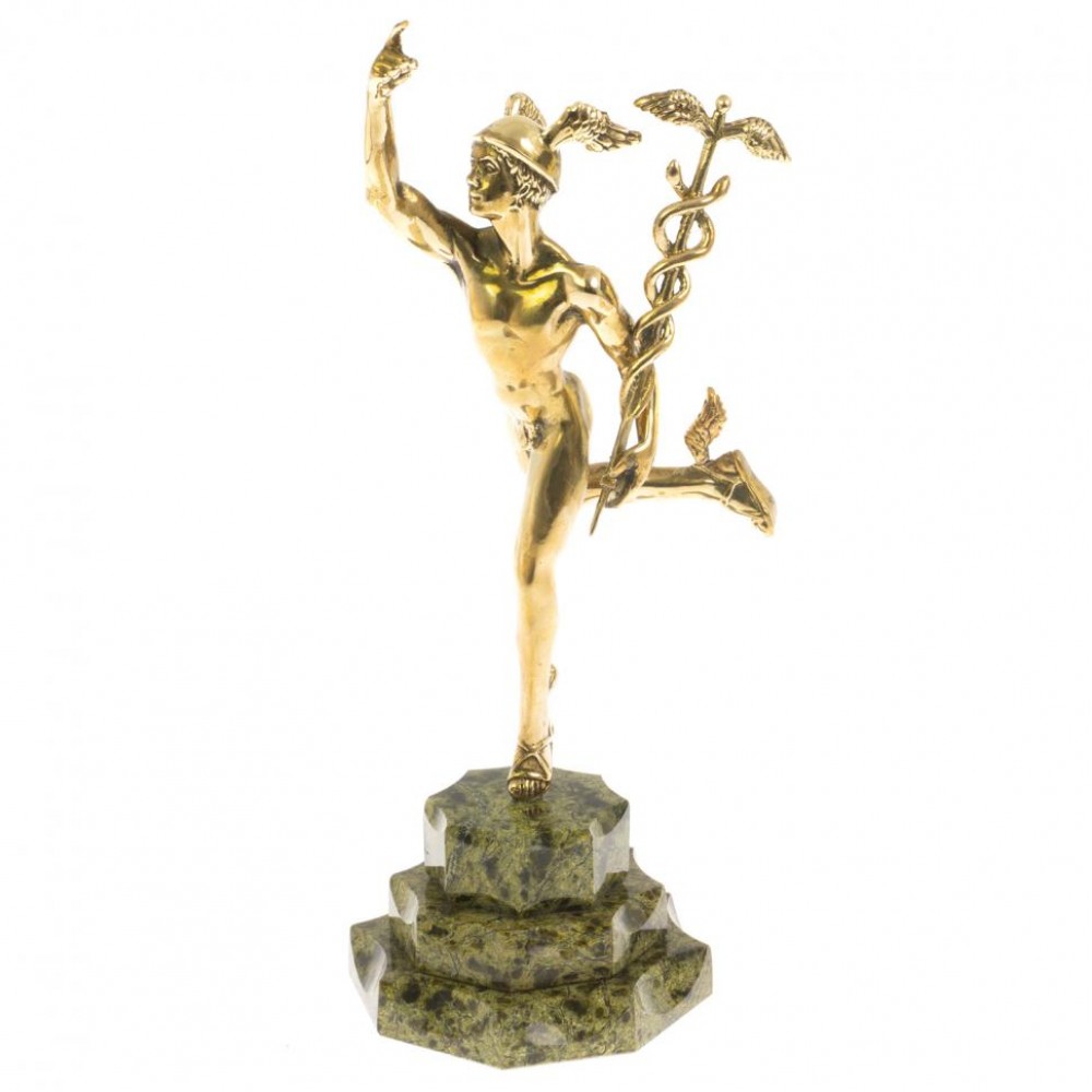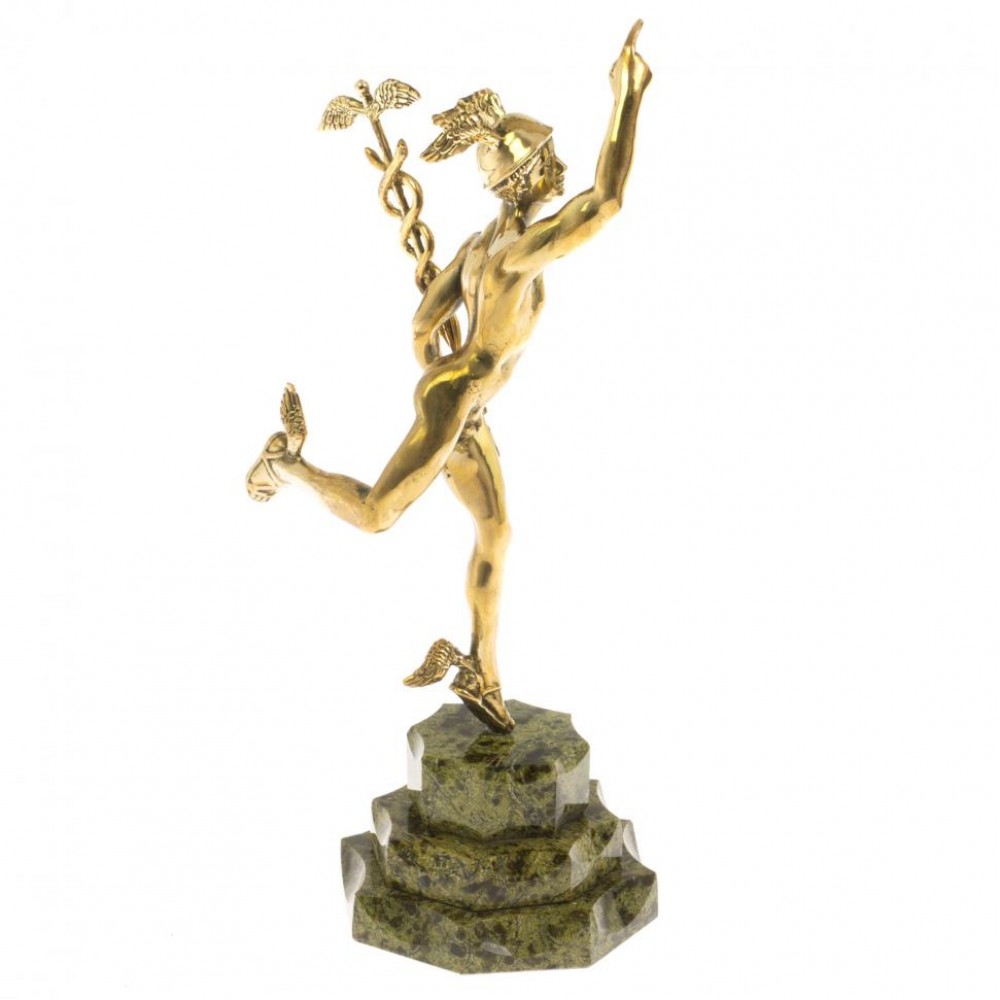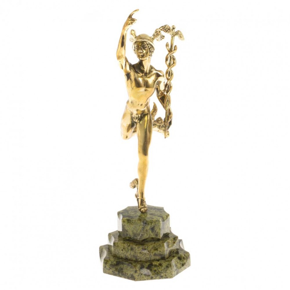 Бронзовая статуэтка "Гермес" на подставке из змеевика размером 9,5х9,5х27 см и весом 970 г.