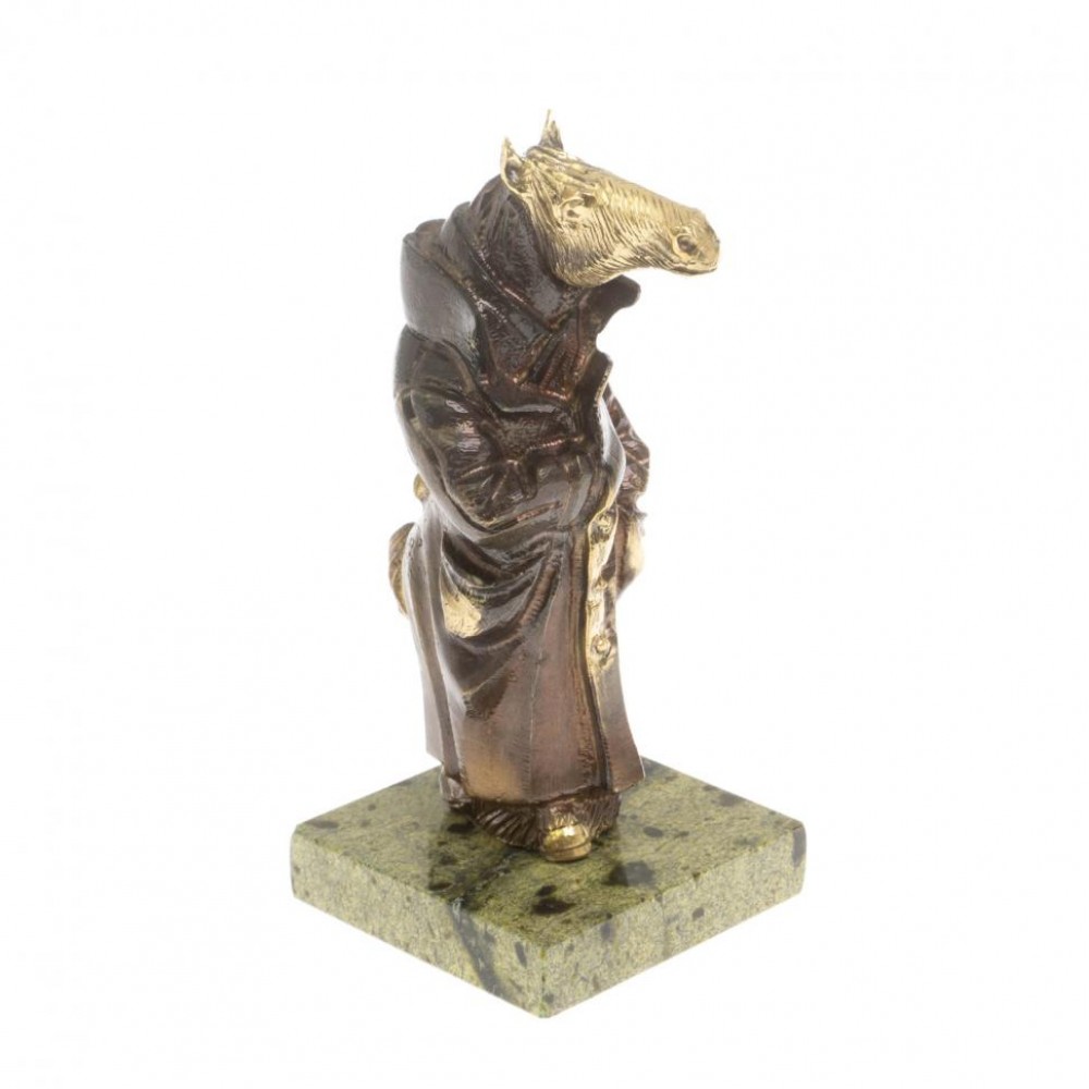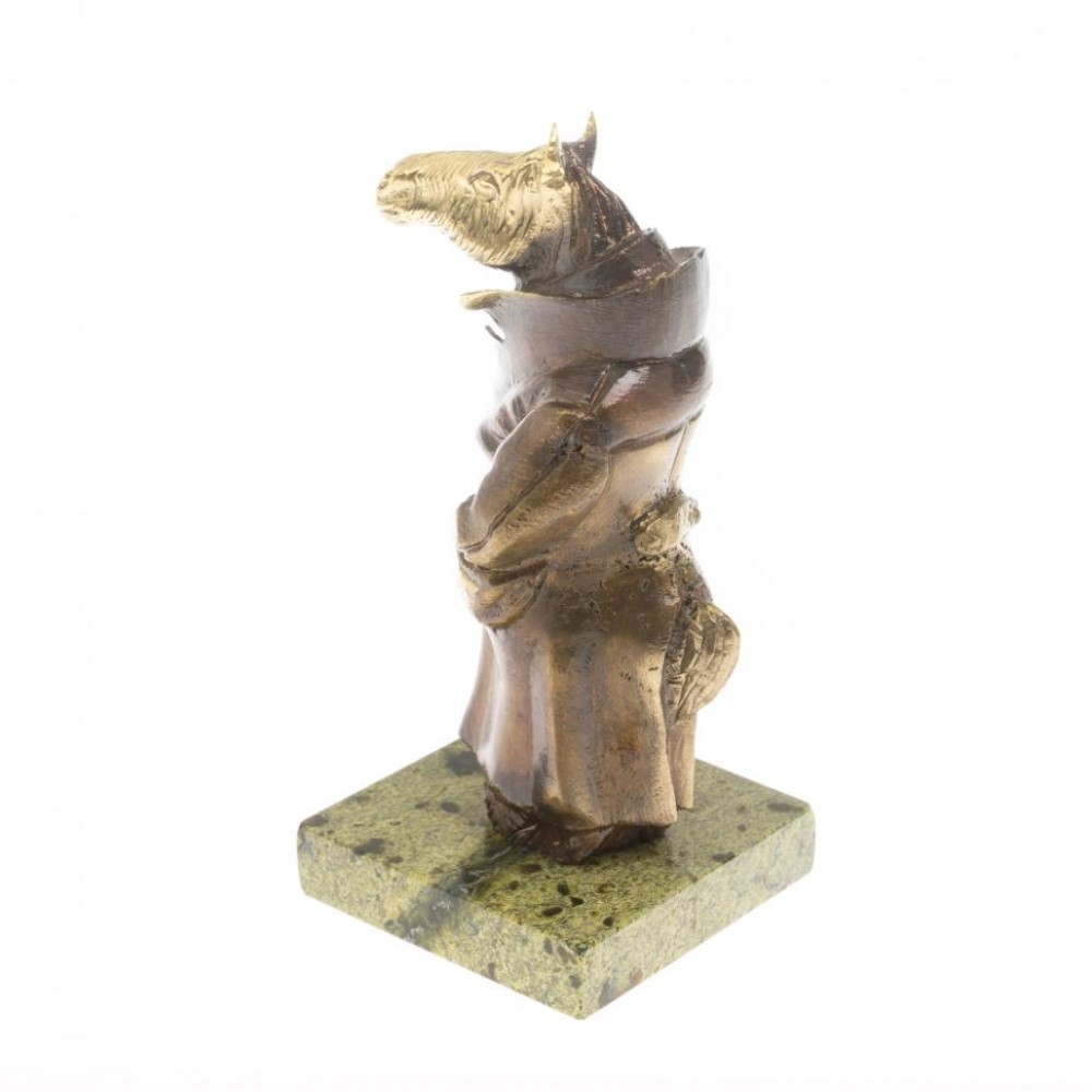 Бронзовая статуэтка "Конь в пальто" из змеевика размером 5х5х11 см и весом 460 г.