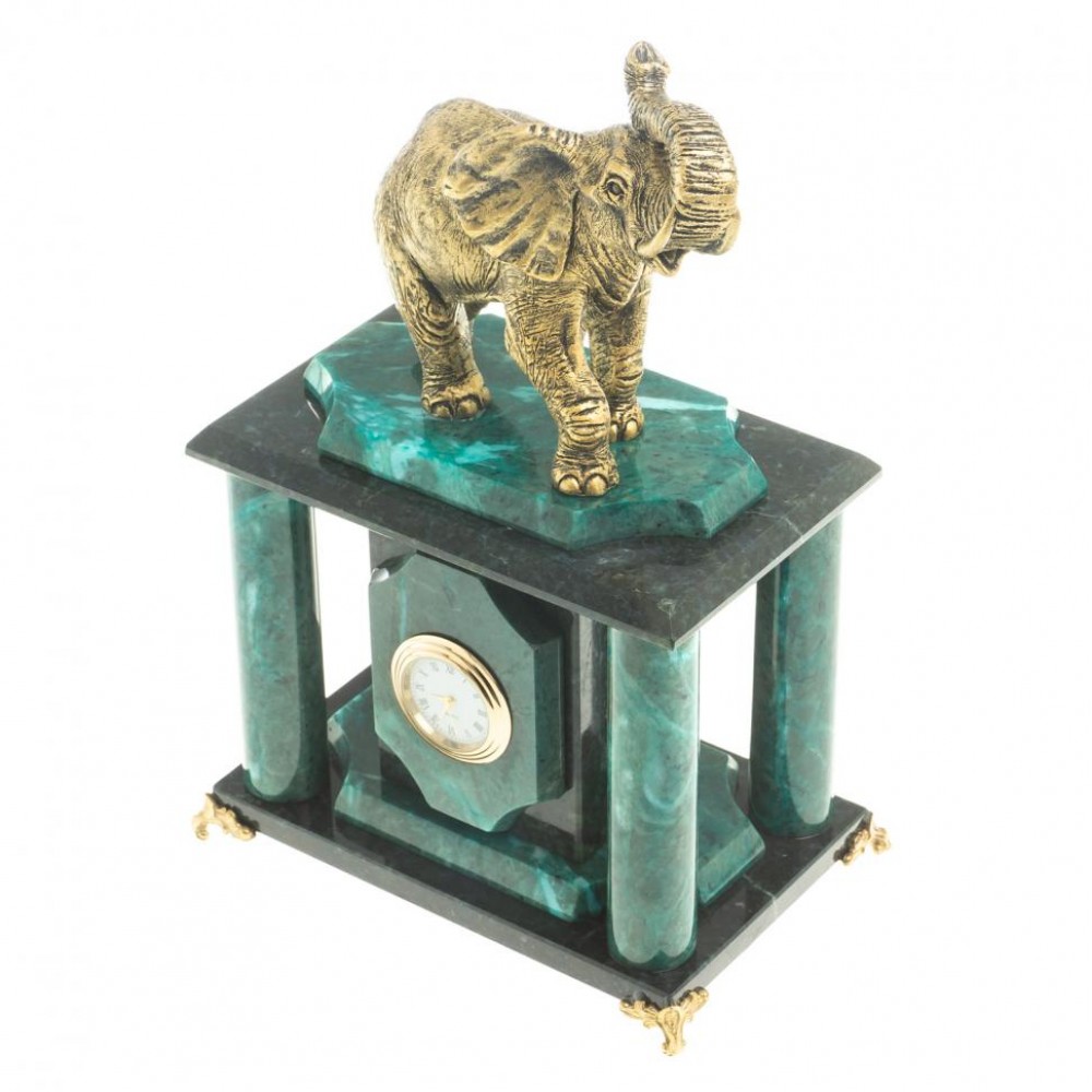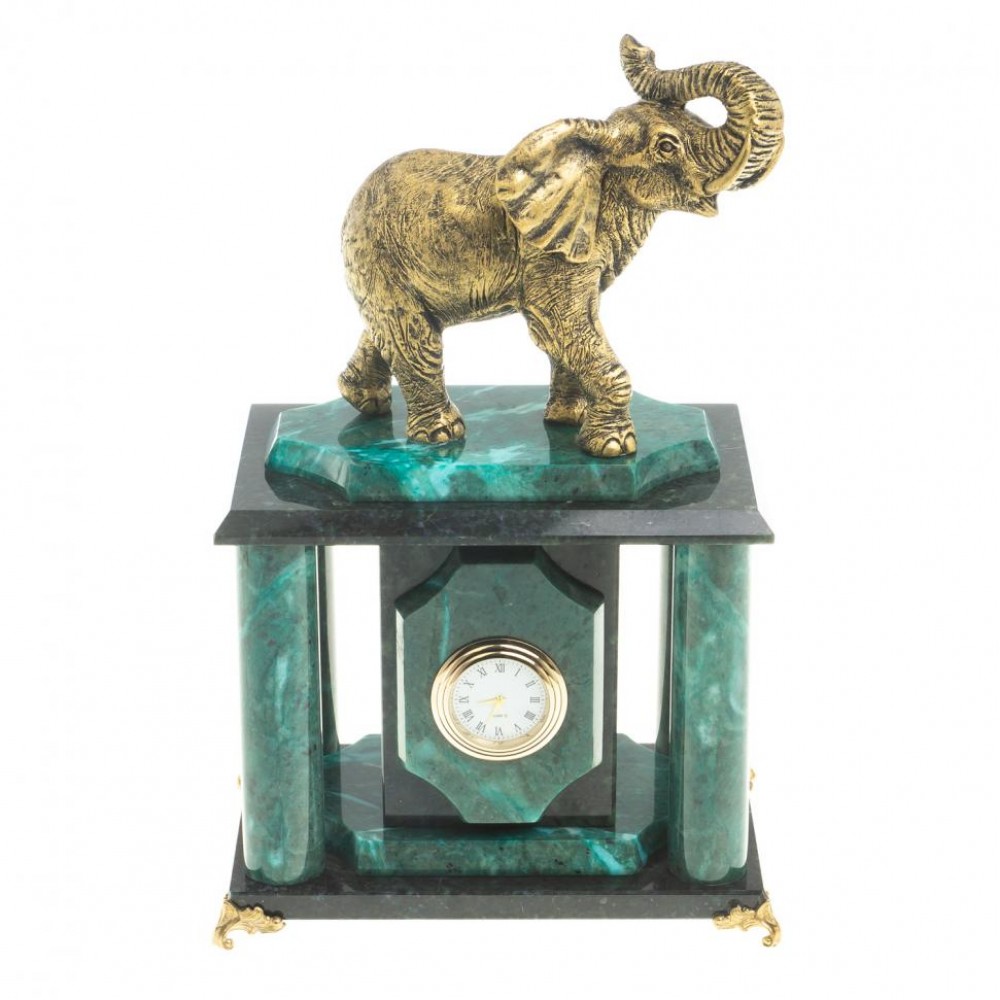 Часы "Индийский слон" камень змеевик размером 17х11х26,5 и весом 2810 г.