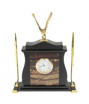 Настольные часы "Орел" камень офиокальцит размером 13х13х30 см и весом 2480 г.Настольные часы из кам..