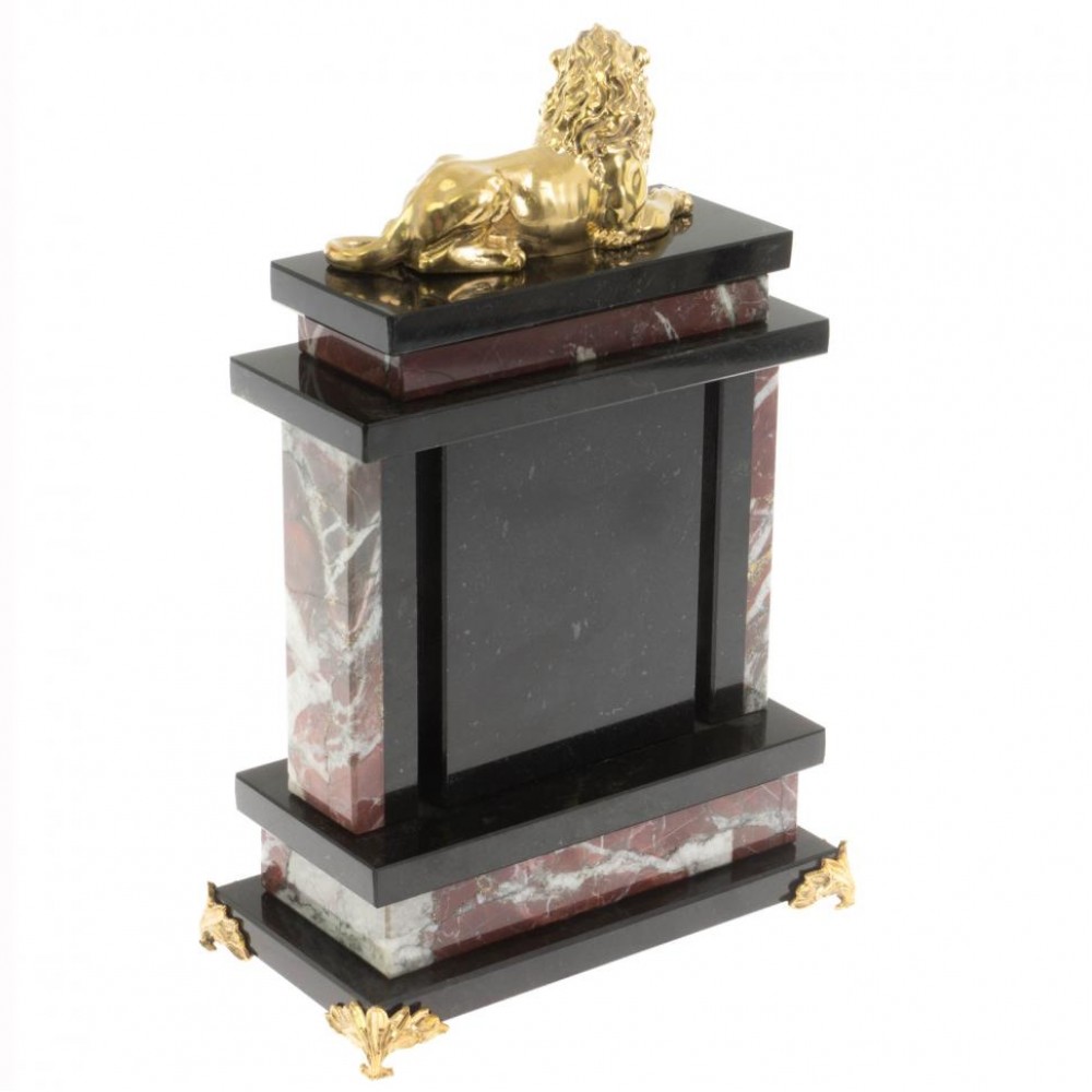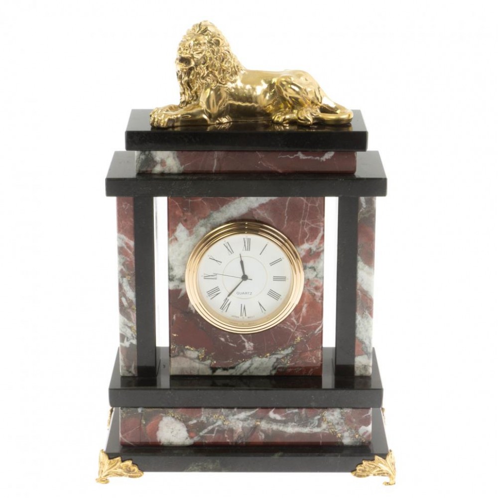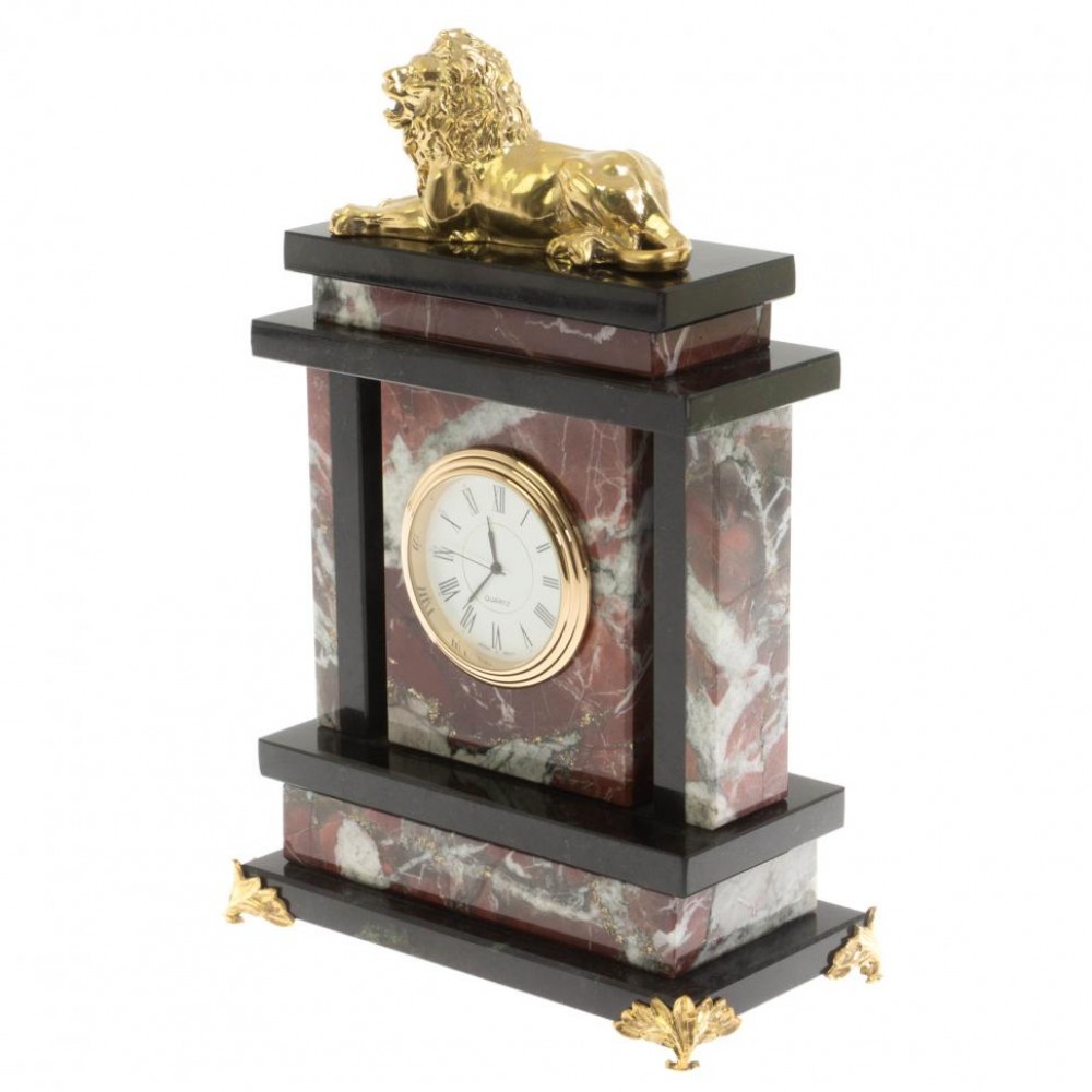 Часы "Лев" из креноида и змеевика размером 14х7,5х21,5 см и весом 2160 г.