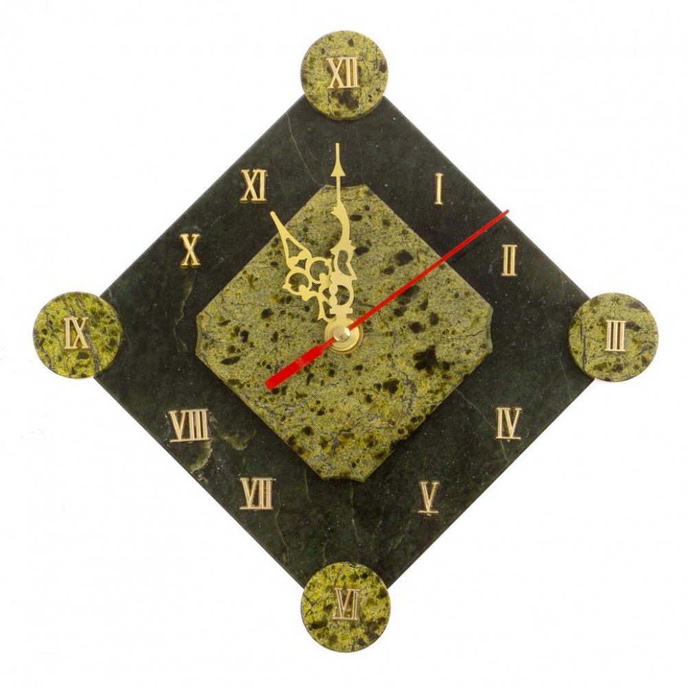 Часы настенные "Элегант" камень змеевик размером 22х22х3 см и весом 890 г.