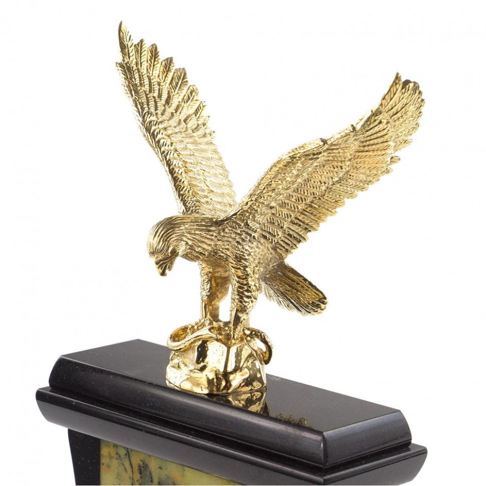 Часы "Орел" из бронзы камень офиокальцит размером 15,5х7,5х29 см и весом 2000 г.