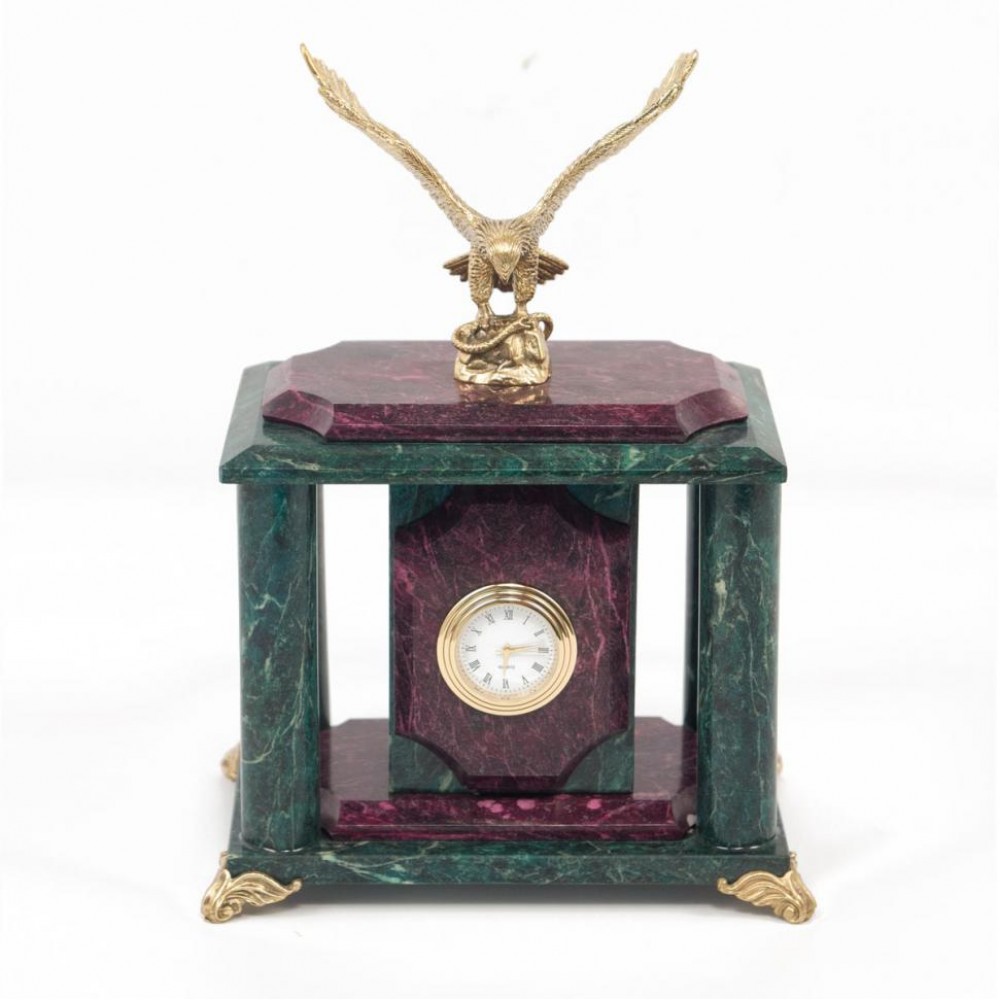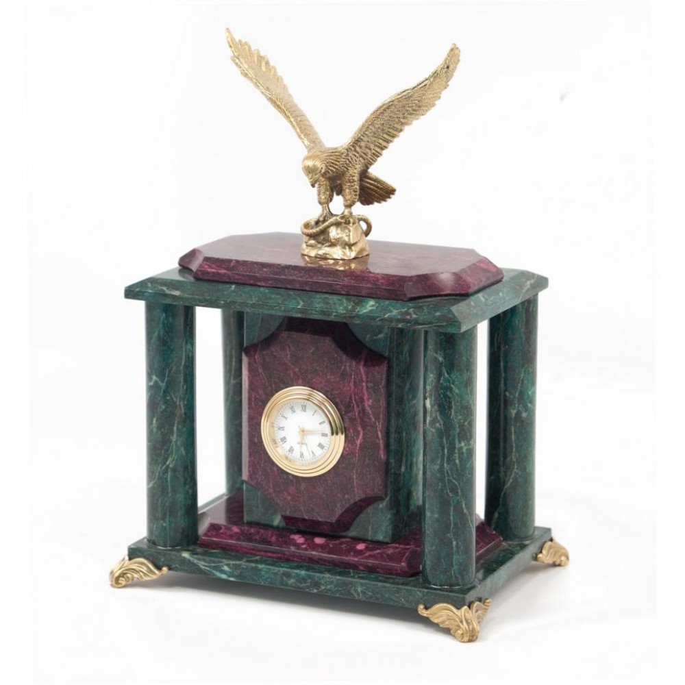 Часы "Орел" камень змеевик бронза размером 18х12х24 см и весом 2900 г.