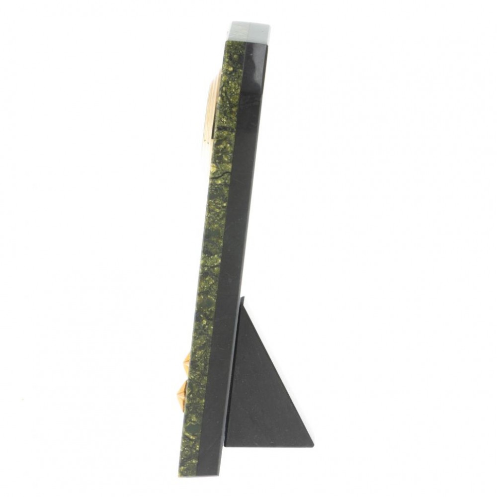 • Часы изготовлены из темно-зеленого змеевика, имеют размеры 6х4х15 см и весят 300 г, просветы из виниловой пленки красног..