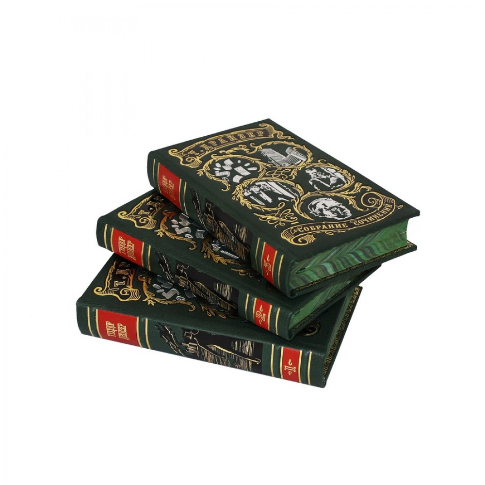 Богато оформленное собрание, представлено в подарочном издании. Цельнокожаный переплёт из натуральной шагрени, ручной работы, украшен цветной кожаной вставкой, а также серебряным и золотым тиснением. На обложке изображён портрет автора, а узнаваемые сюжеты и образы дополняют дизайн. Корешок декорирован бинтами. Текст книги напечатан на офсетной бумаге и дополнен чёрно-белыми иллюстрациями. Обрез оформлен в технике ""Перо павлина"". Ляссе из шёлковой ленты. Форзац цельный из дизайнерской бумаги. Дублюра окатана золотом.