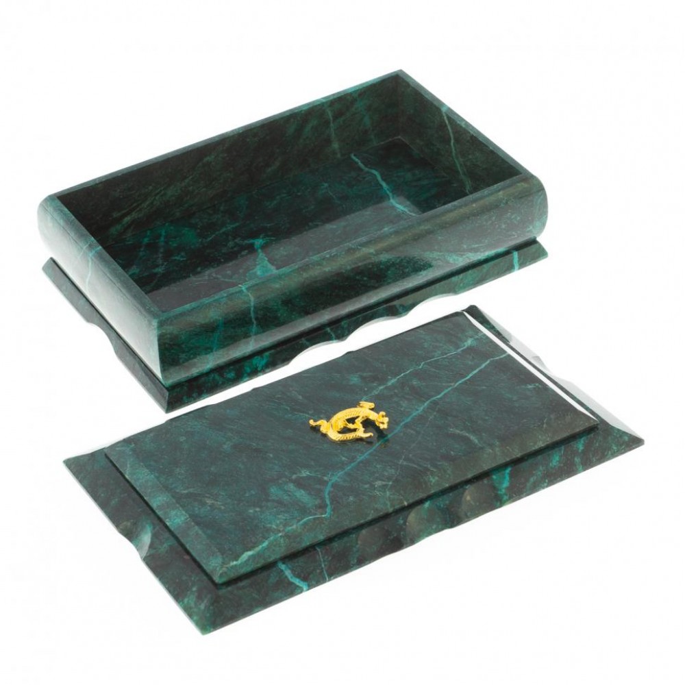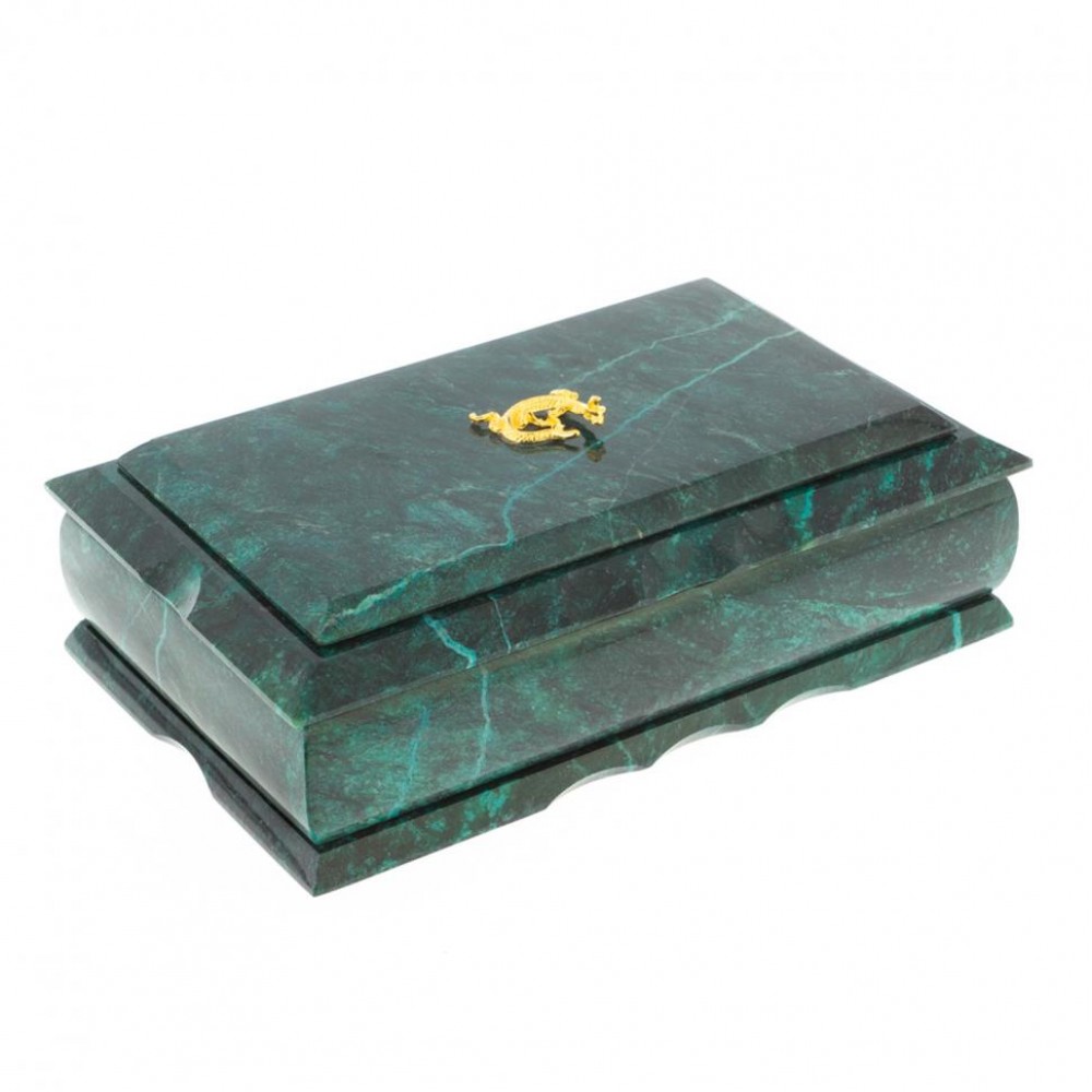 Каменная шкатулка из змеевика 21х13х7,5 см размером 21х13х7,5 см и весом 2100 г.