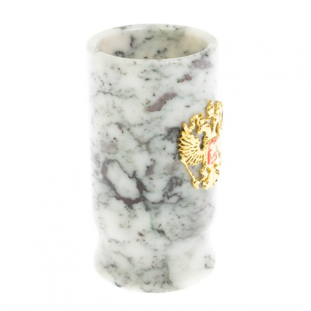 Карандашница "Герб РФ" из мрамора 6х6х11,5 см размером 6х6х11,5 см и весом 430 г.
