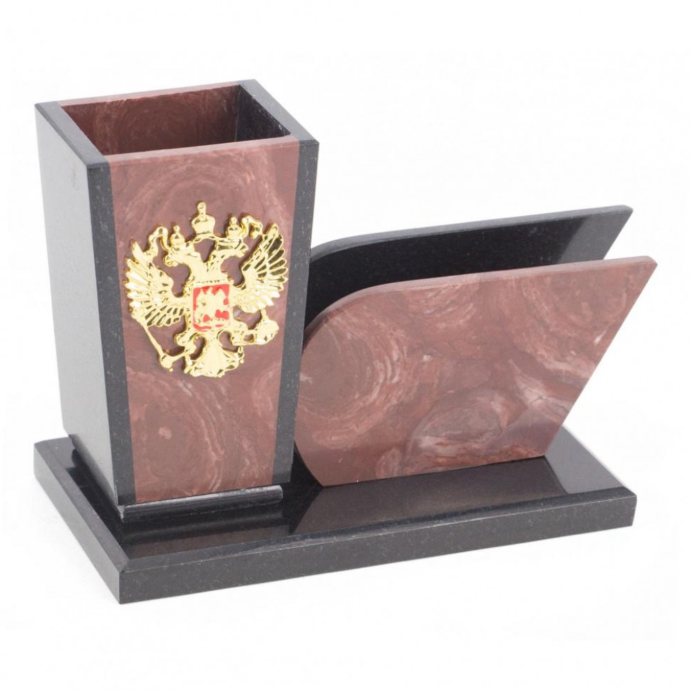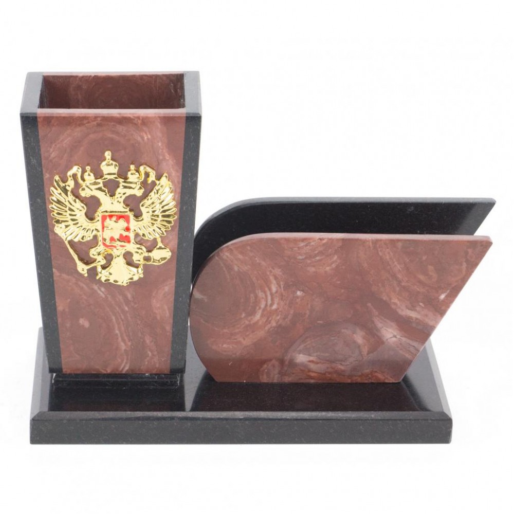 Карандашница с визитницей "Герб" из лемезита размером 15х7х10 см и весом 660 г.