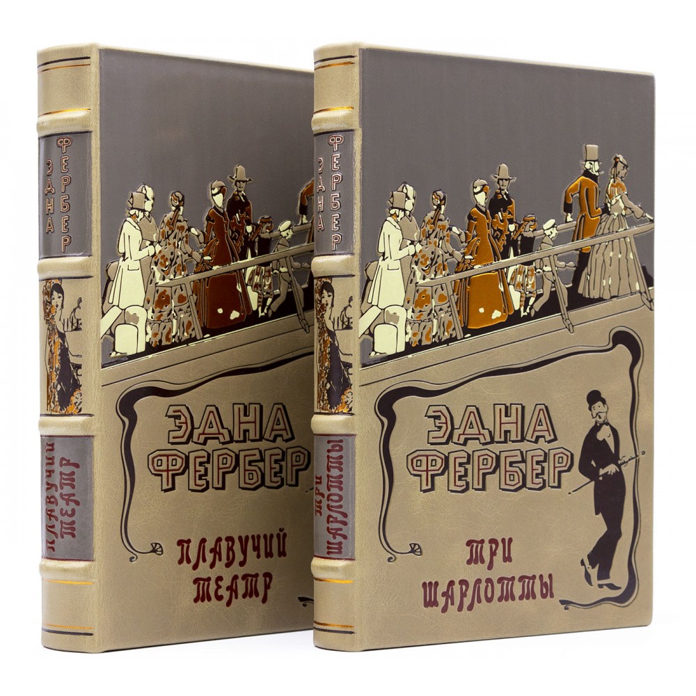Книги Эдны Фербер Три Шарлоты и Плавучий театр в уникальном оформлении. Кожаный переплет с индивидуальным тематическим тиснением, обрезы страниц тонированы, нанесен золотой орнамент. Эти книги будут прекрасным подарком дорогому человеку, увлекающемуся литературой.