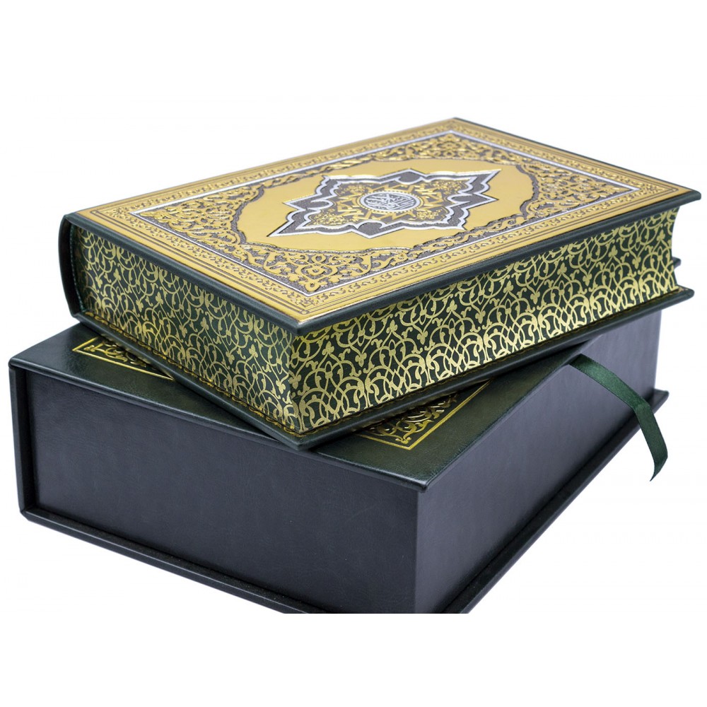 Коран, книга в кожаном переплете, полностью ручная работа, старинный стиль переплета в сочетании с оригинальным восточным дизайном оформления и натуральными материалами, делают эту книгу идеальным подарком. Данное издание содержит текст перевода Э. Р. Кулиева, набранный параллельно с оригинальным арабским текстом исламского Священного Писания.