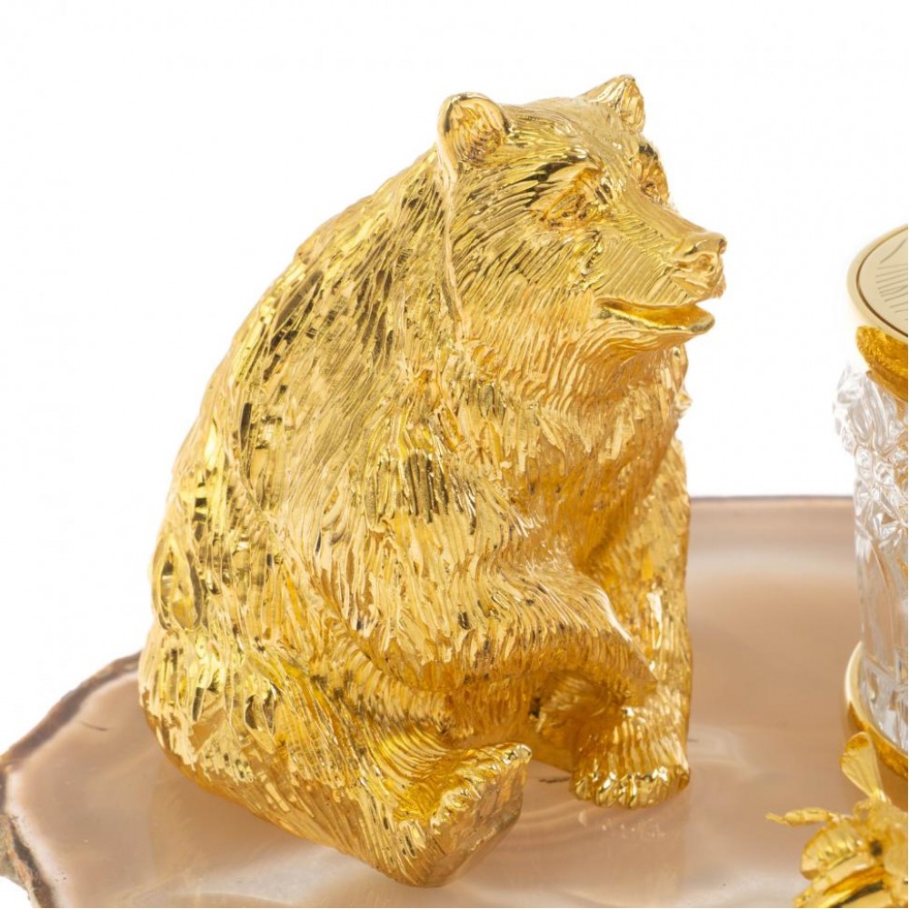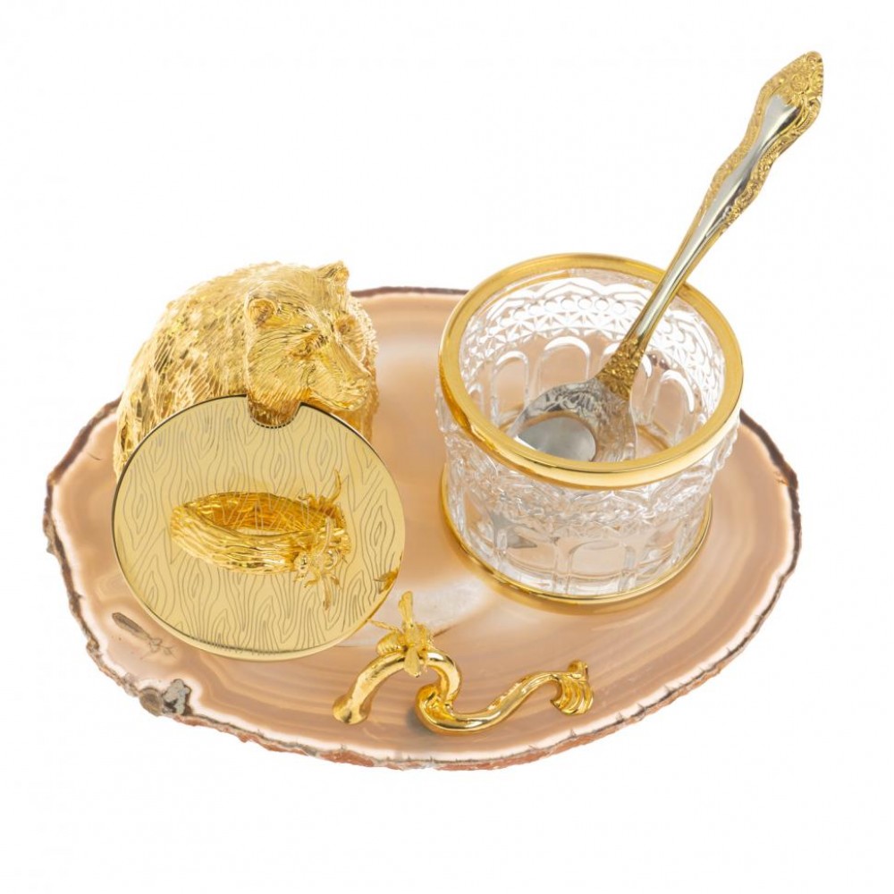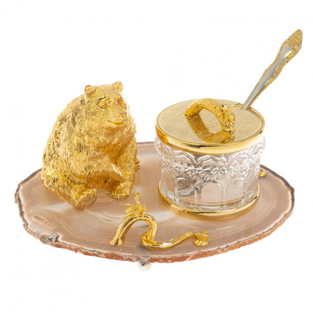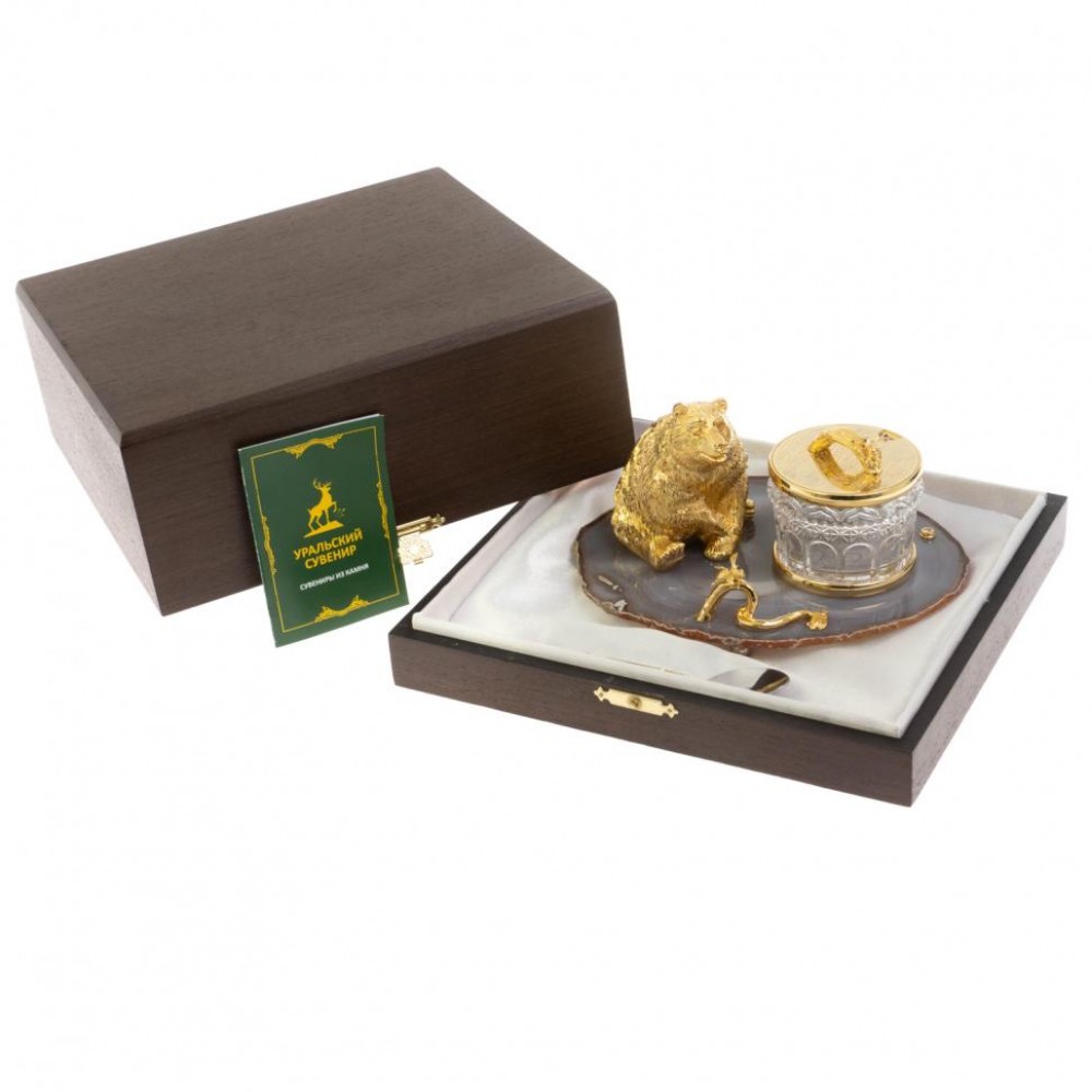 Медовница "Медведь" камень агат Златоуст размером медовница 18х15х10 см, ложка 11,5х2 см, и весом 2700 г.