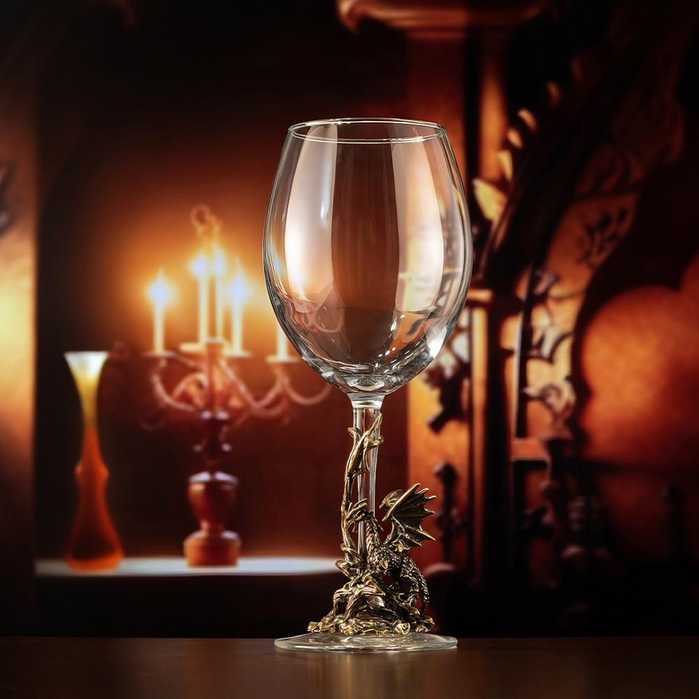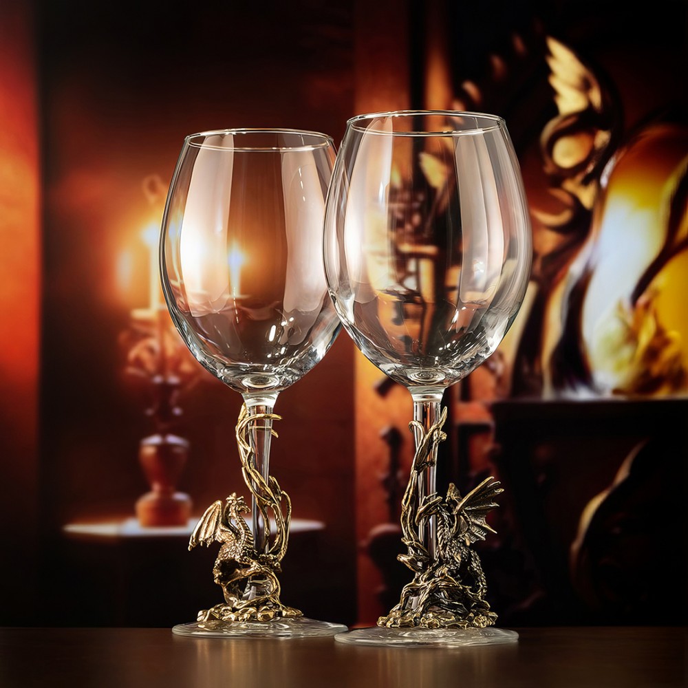 Набор 2 бокала для вина "Дракон и Дракониха",(со статуэткой на ножке),в подарочной коробке