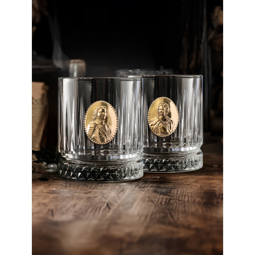 Набор 2 бокала виски Элизия с накл."Петр I " и нак. "Екатерина II " в черной подарочной коробке