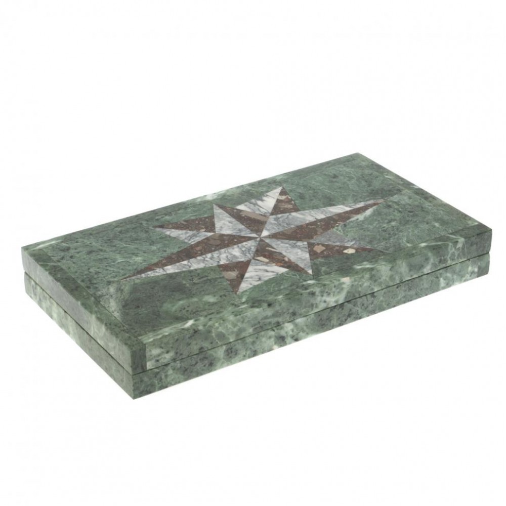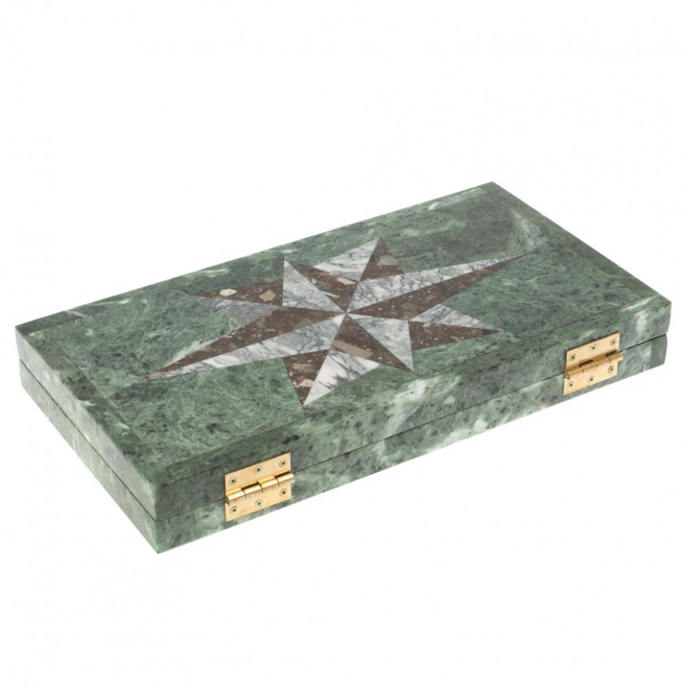 Нарды из камня "Роза ветров" серый мрамор / конгломерат размером открытые 48х44х2,5 см, закрытые 24х44х5 см и весом 9000 г.