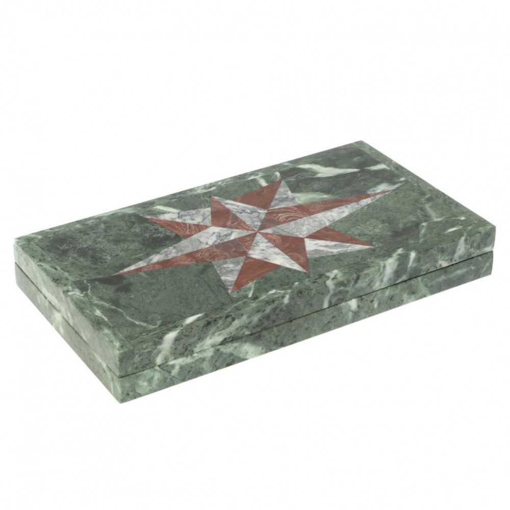 Нарды из камня "Роза ветров" серый мрамор / лемезит размером открытые 48х44х2,5 см, закрытые 24х44х5 см и весом 9000 г.