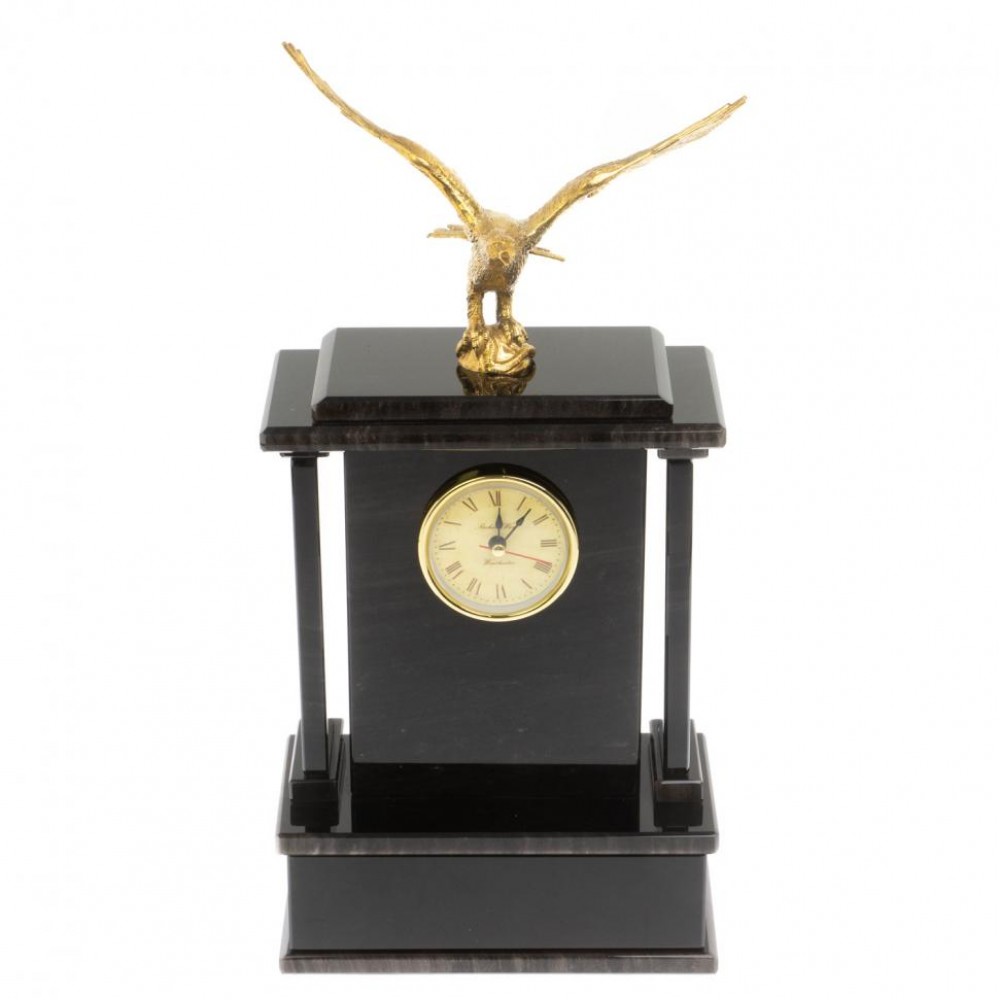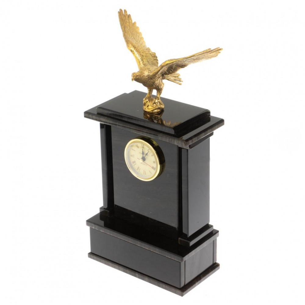 Настольные часы "Орел"из черного обсидиана размером 18х9х39 см и весом 3800 г.