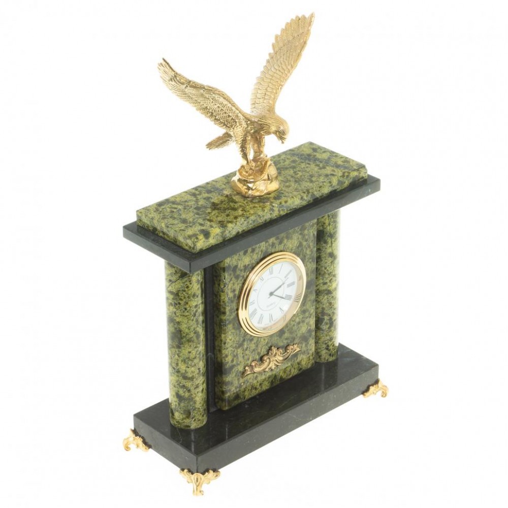 Настольные часы "Горный орёл" камень змеевик размером 26х16х7 см и весом 1820 г.