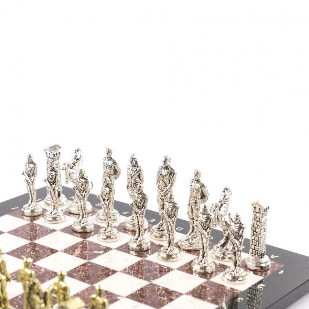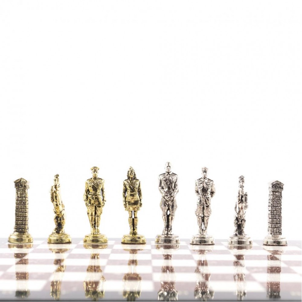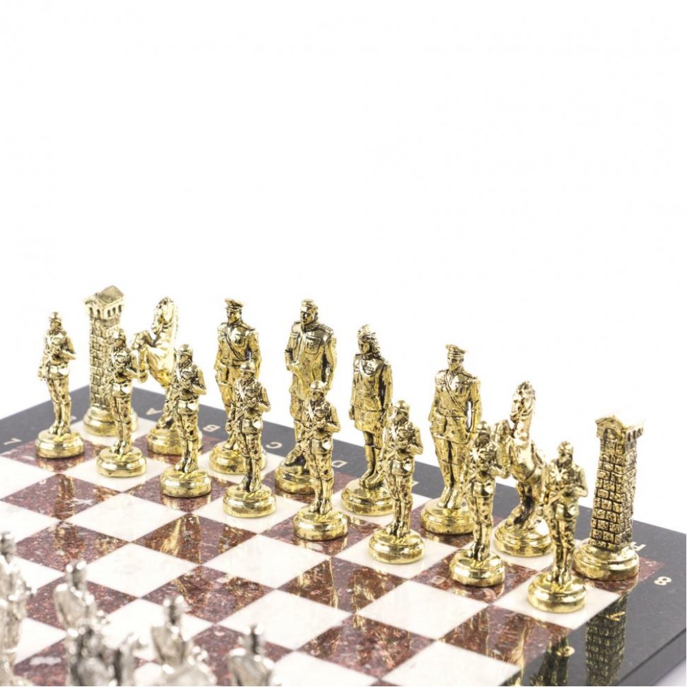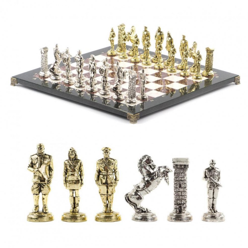 Предлагаем купить настольные шахматы с оригинальными фигурами воинов Второй Мировой войны на доске 44х44 см из природного камня.