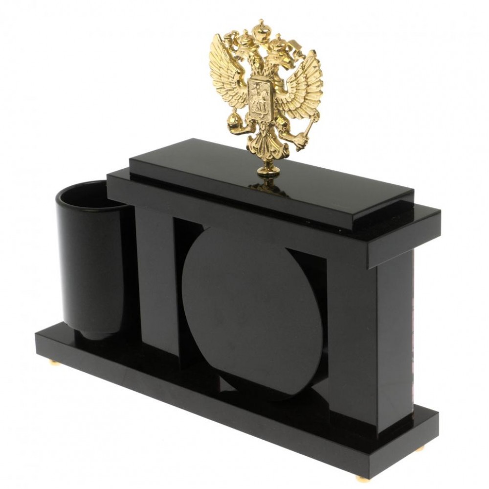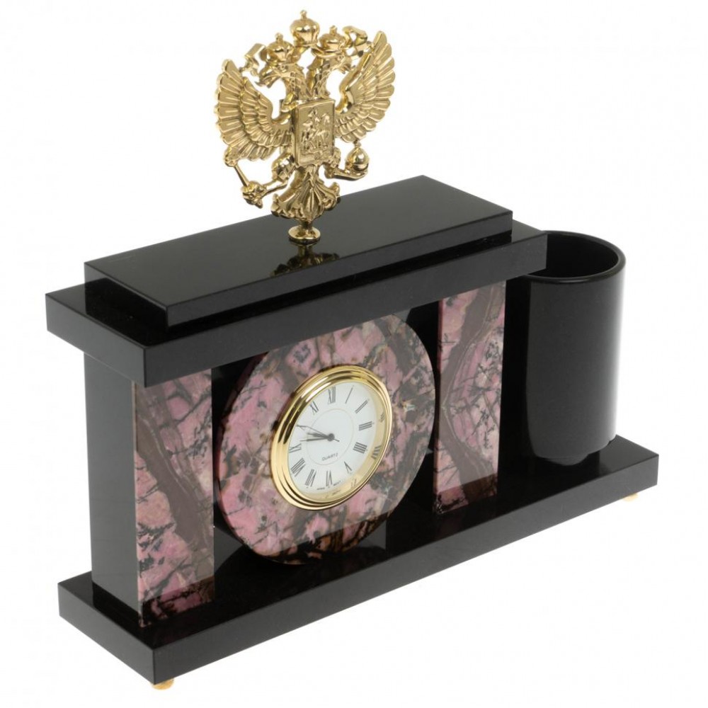 Настольный мини-набор "Герб РФ" из родонита размером 24,5х6х23 см и весом 2800 г.