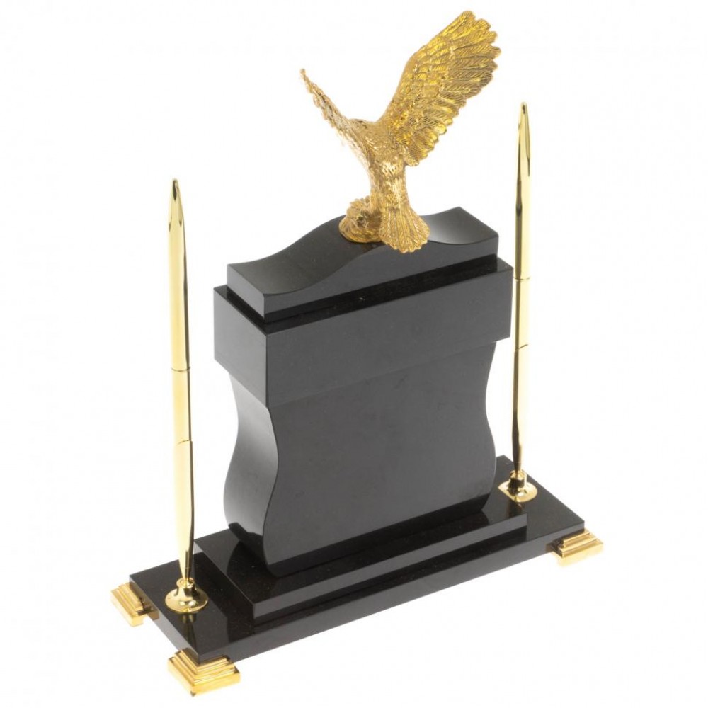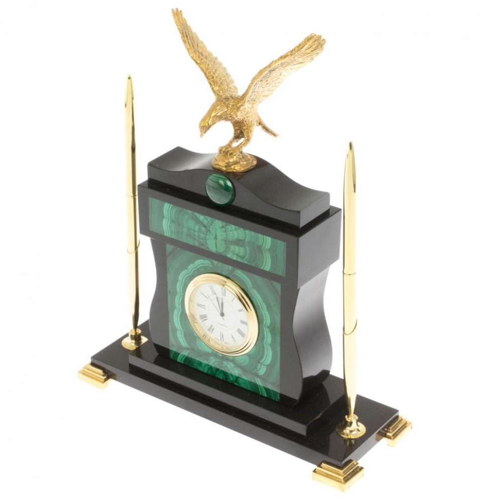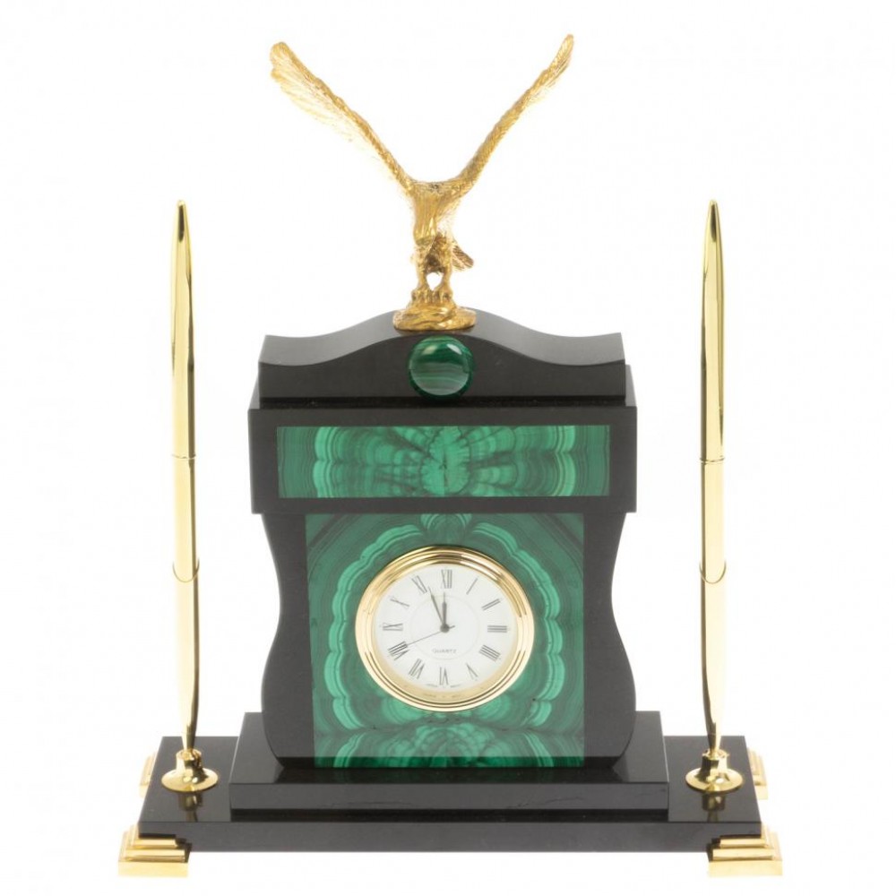 Настольный мини набор с ручками "Горный орёл" малахит размером 20,5х7х27 см и весом 2200 г.