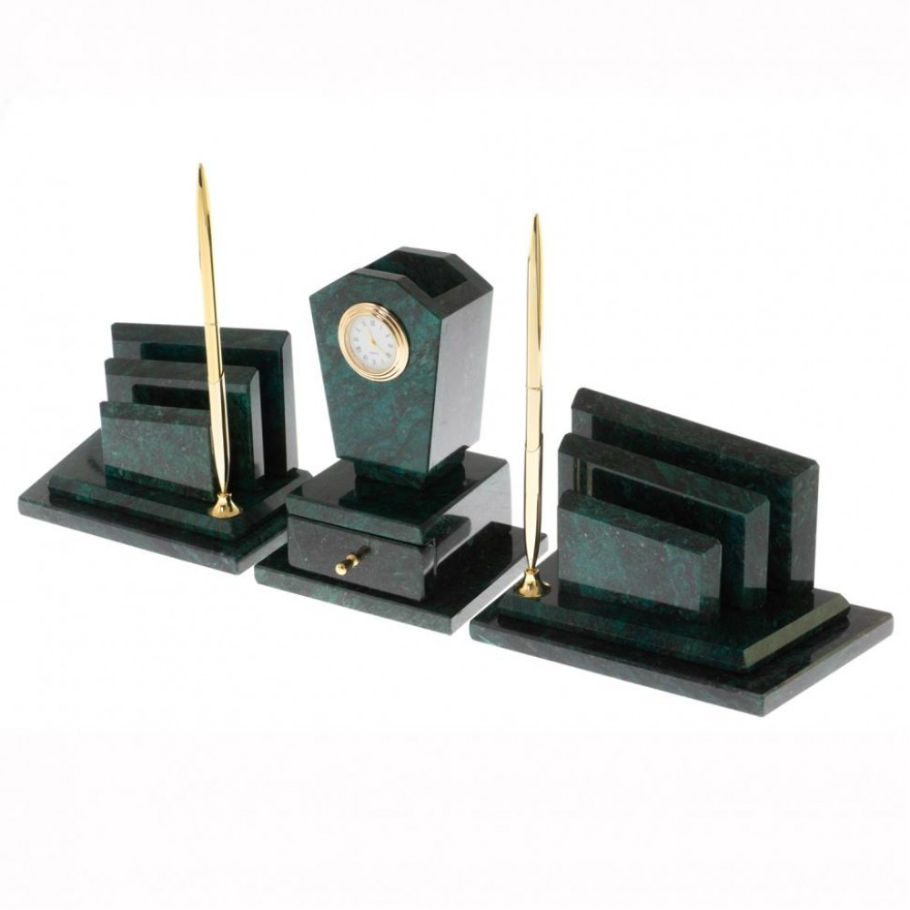 Настольный набор из змеевика станет отличным подарком руководителю. Этот аксессуар органично впишется в интерьер любого кабинета, став удобным дополнением рабочего стола.