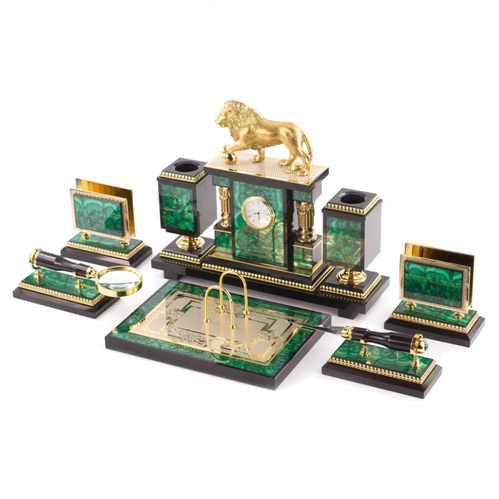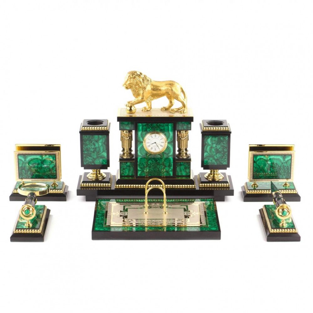Настольный набор из природного камня станет прекрасным подарком директору и хорошо впишется в интерьер любого кабинета, став полезным дополнением рабочего стола.