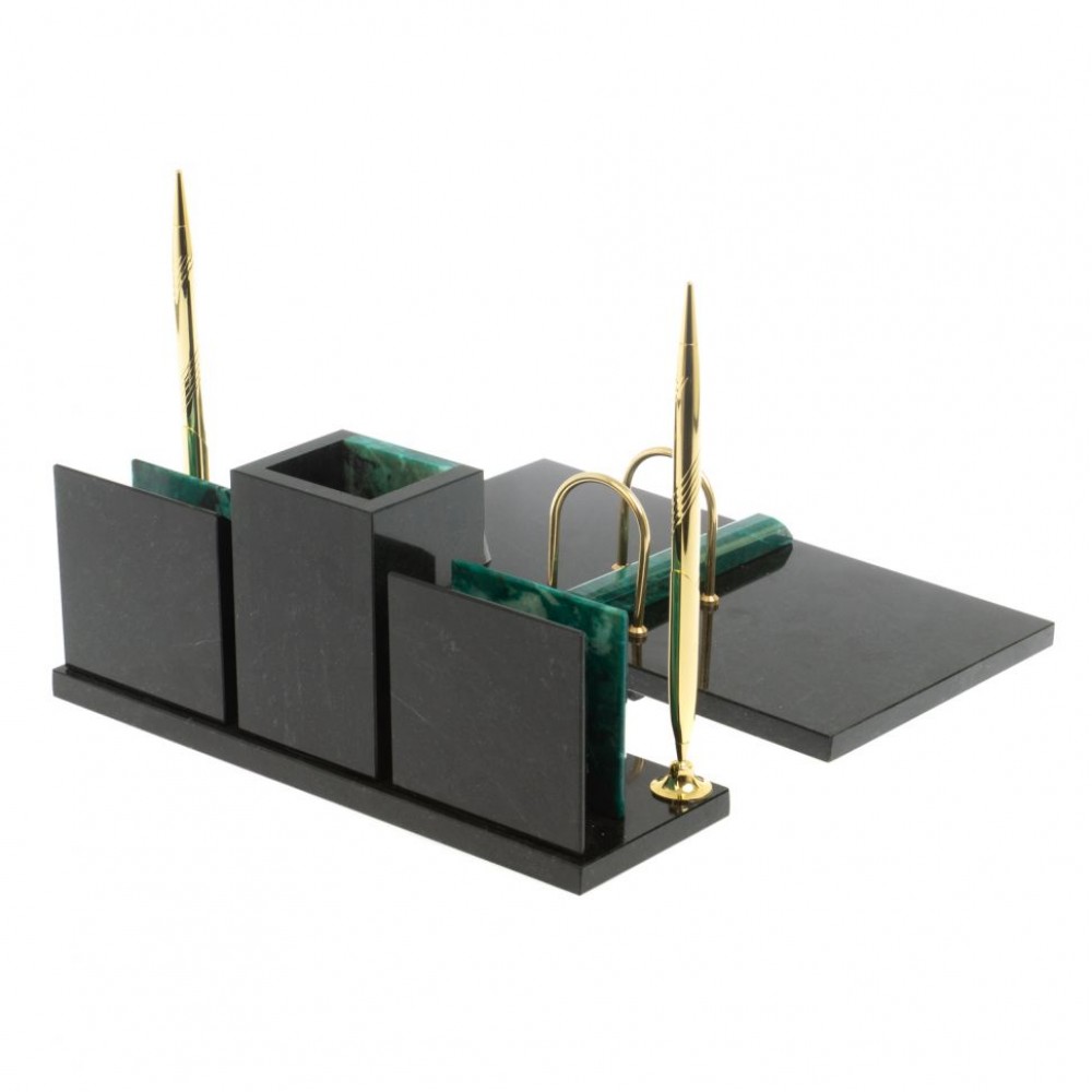 Настольные наборы из змеевика имеют классический дизайн и вдобавок они изготавливаются вручную из безопасных и экологичных материалов.