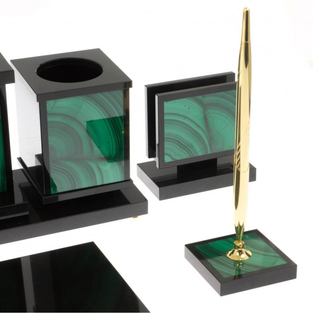 Письменные наборы из малахита имеют стильный дизайн и вдобавок они сделаны вручную из безопасных и экологичных материалов.