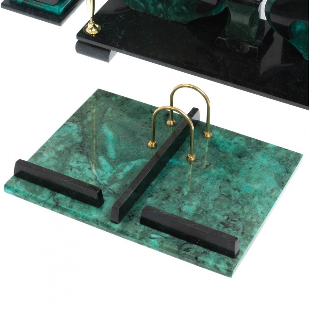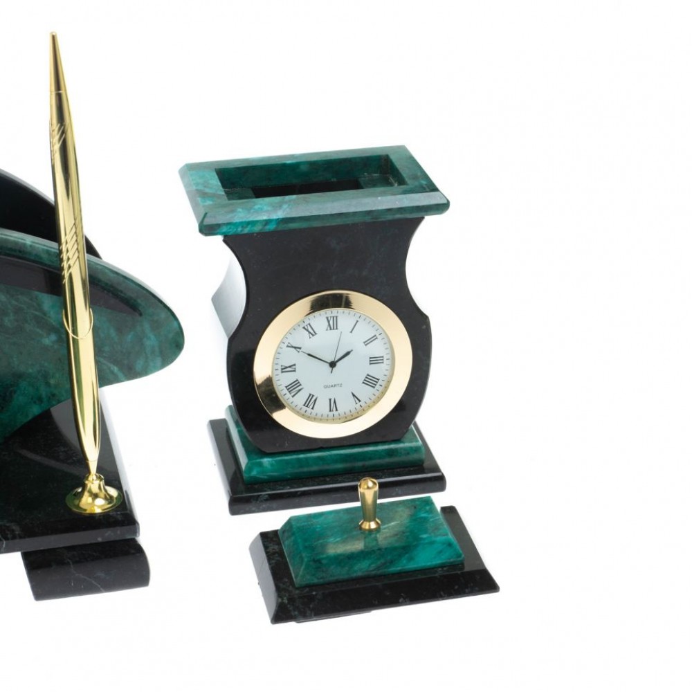 Настольные наборы из змеевика имеют стильный дизайн и вдобавок они изготавливаются вручную из безопасных и экологичных материалов.