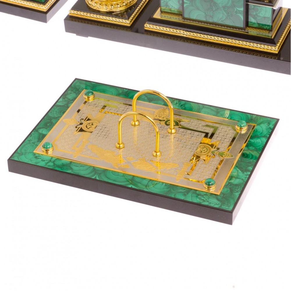 Письменные наборы из малахита имеют классический дизайн и вдобавок они сделаны из безопасных и экологичных материалов.