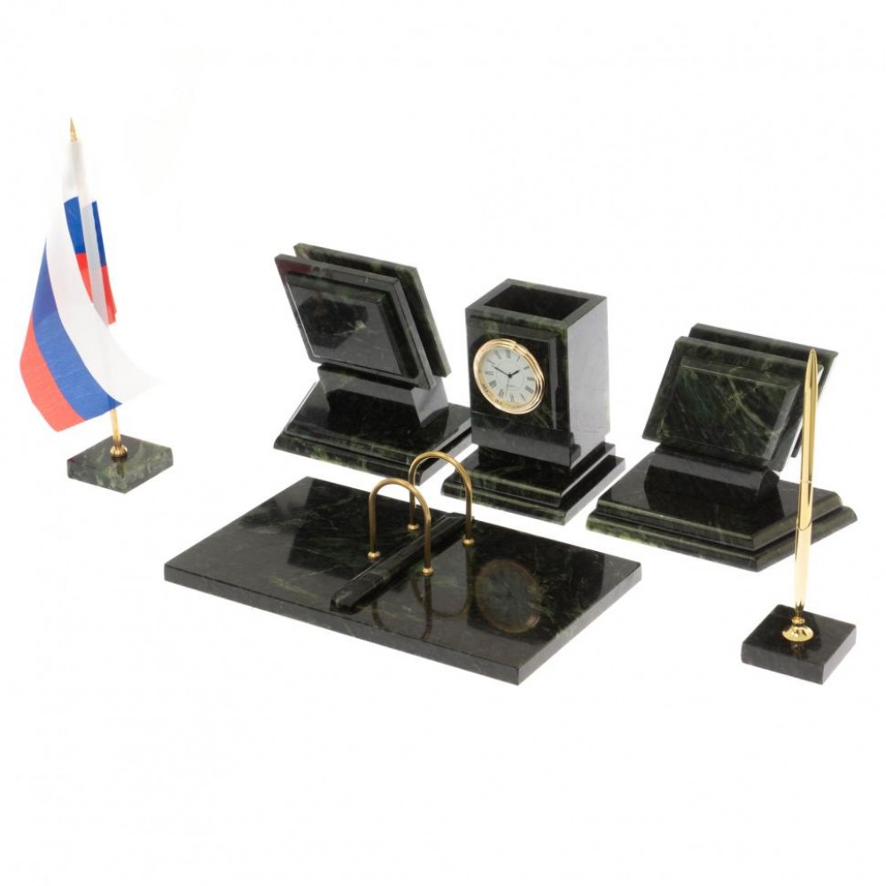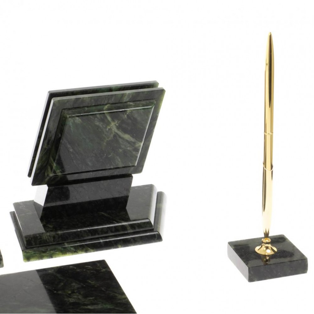 Настольные наборы из змеевика имеют классический дизайн и вдобавок они изготавливаются вручную из натуральных и экологичных материалов.