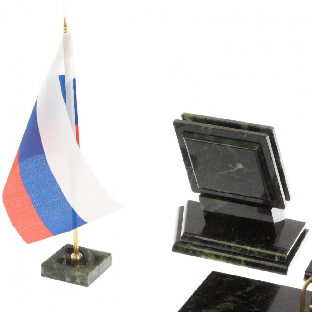 Настольный набор "Триколор" камень змеевик размером часы 10х9х13 см, визитница 15,5х9х13 см, календарница 26х16х2 см и весом 6000 г.