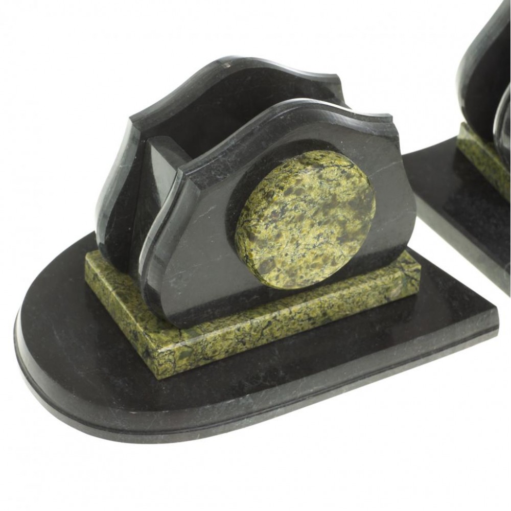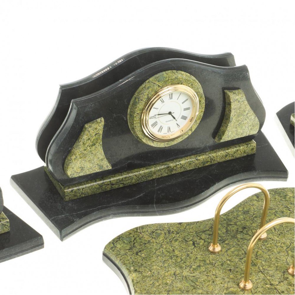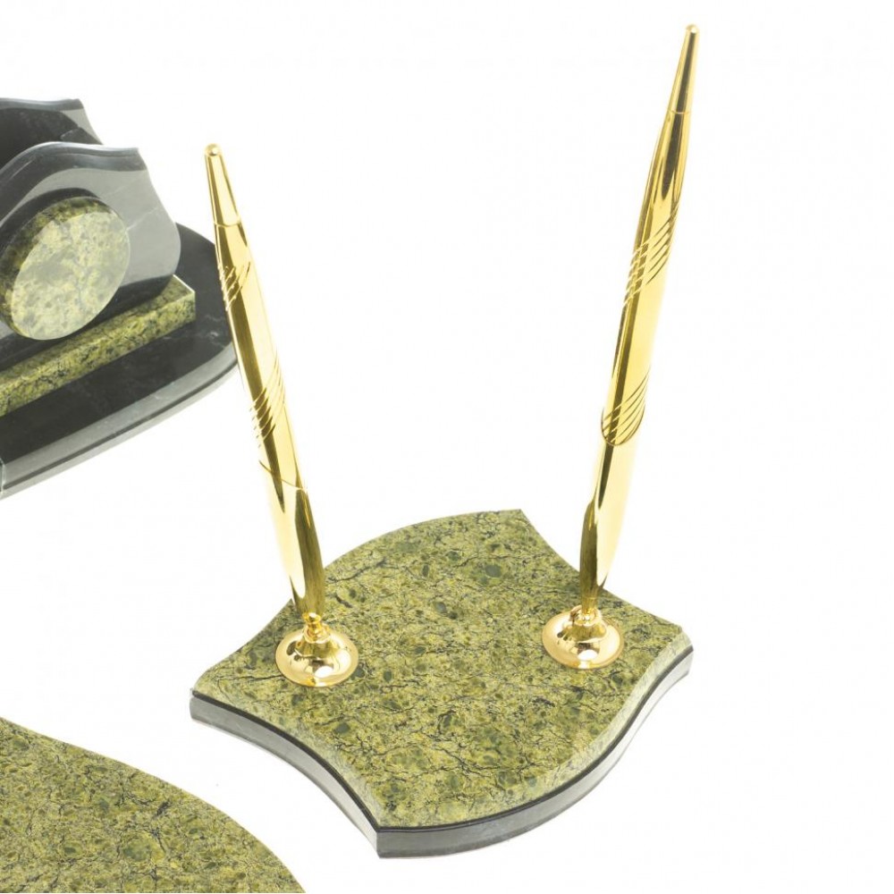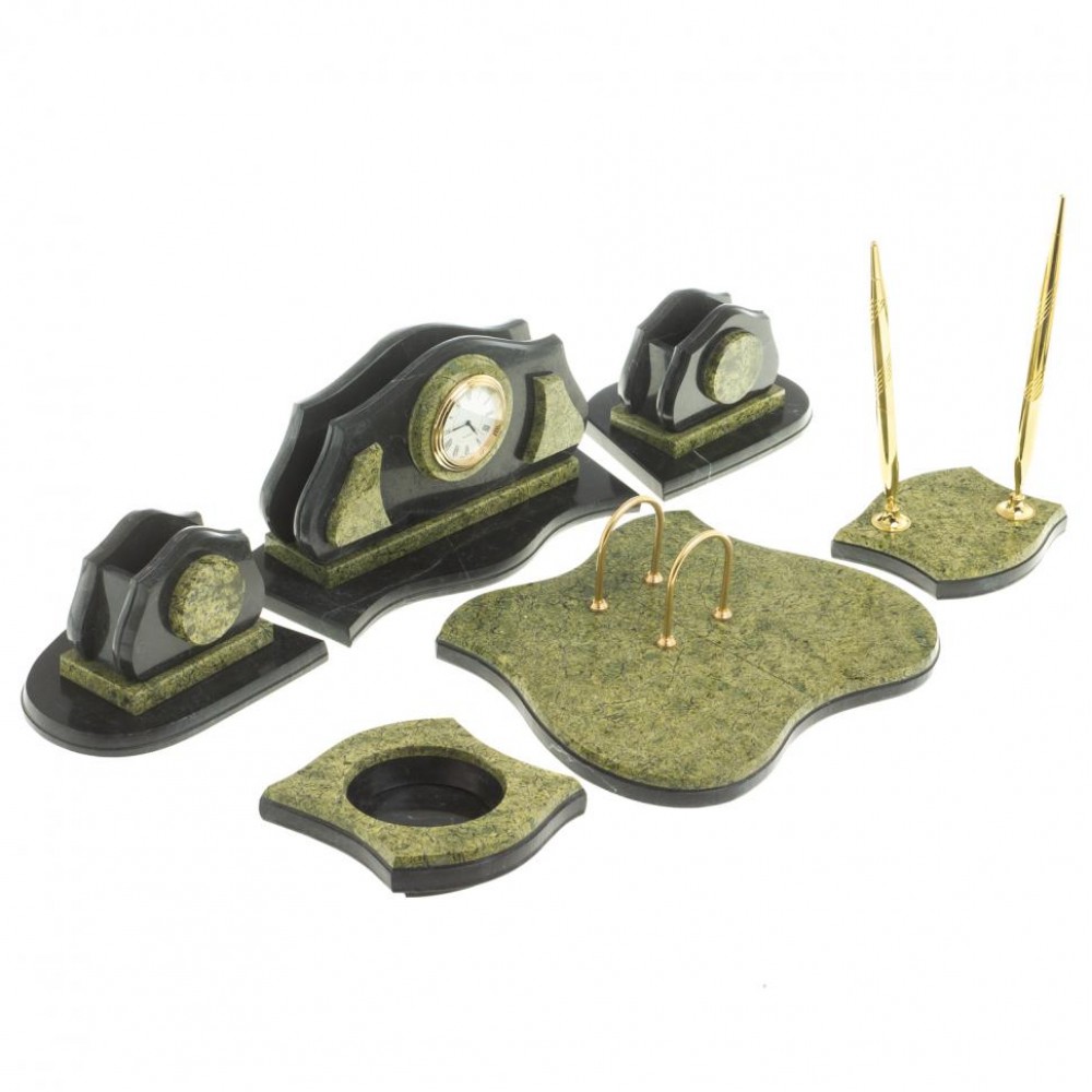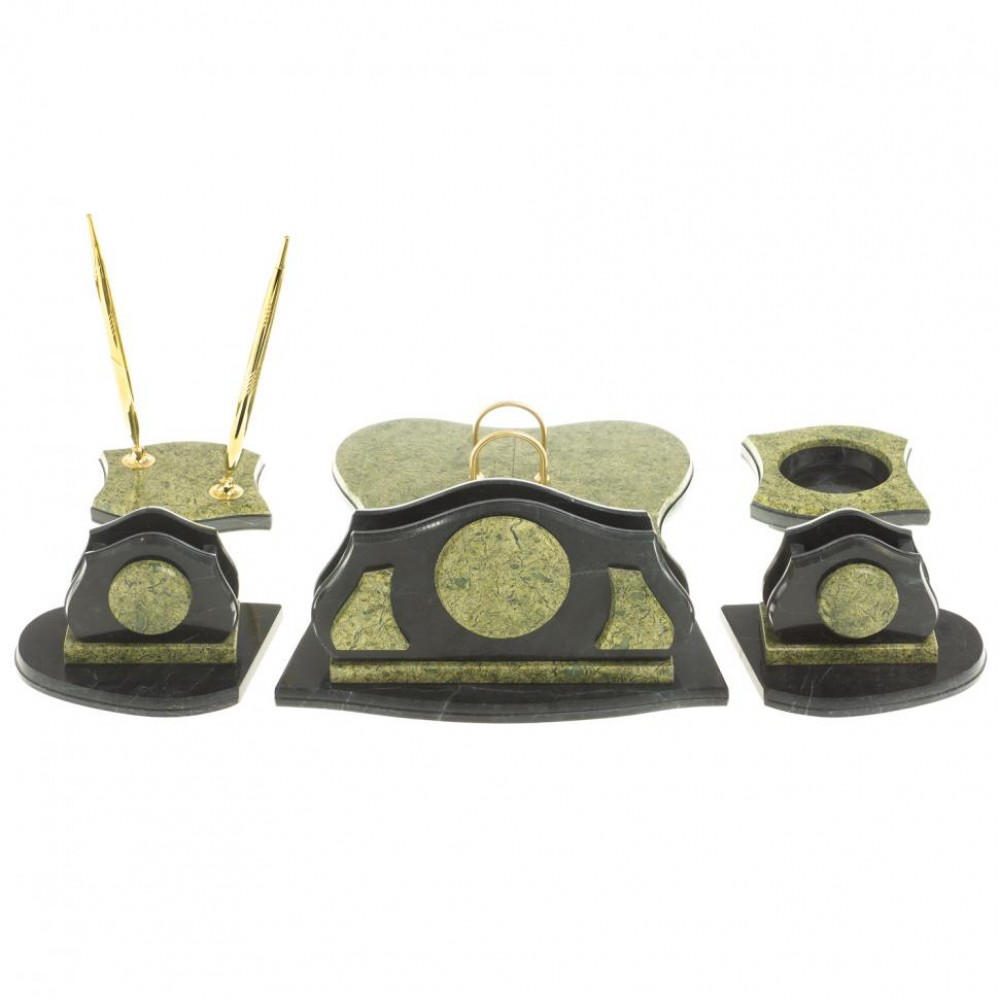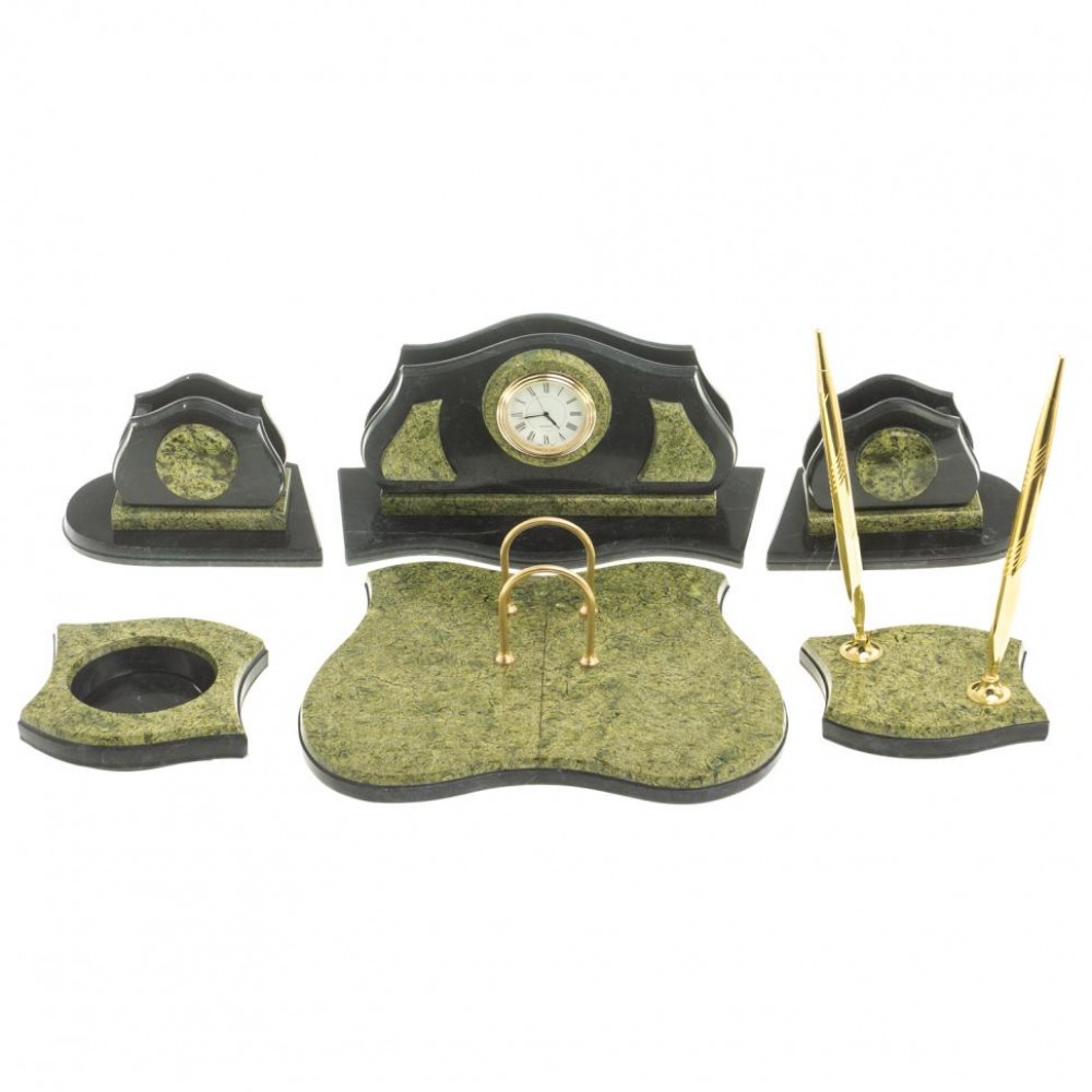 Настольный набор изготовлен из камня змеевик и весит 6000 г.