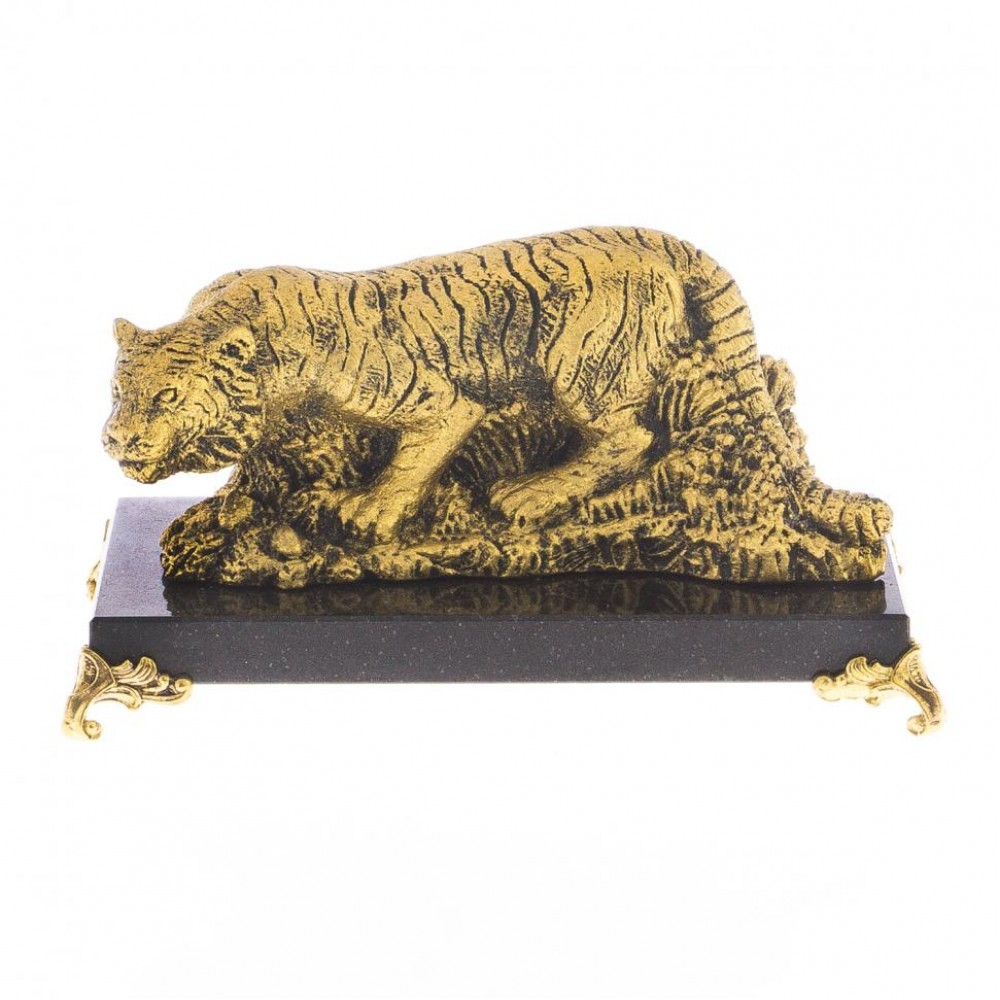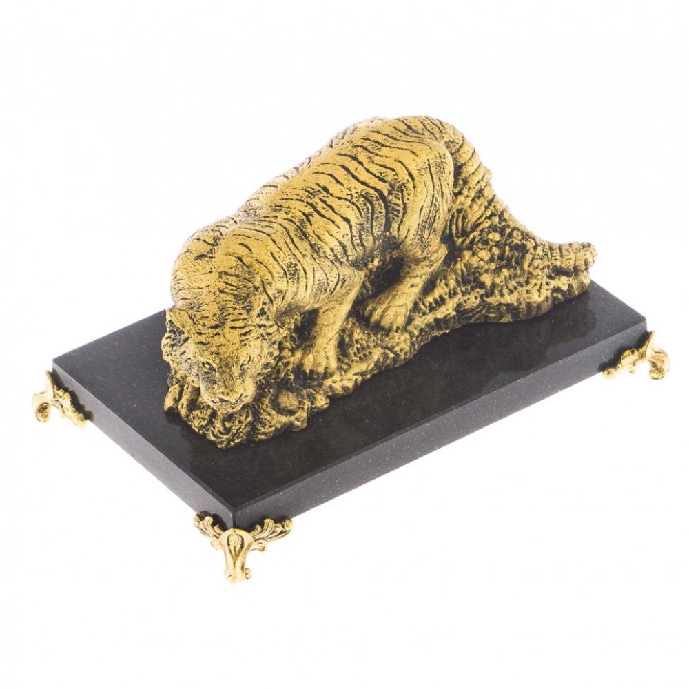 Сувенир фигурка "Тигр на охоте" на подставке из камня размером 14х9х7,5 см и весом 620 г.