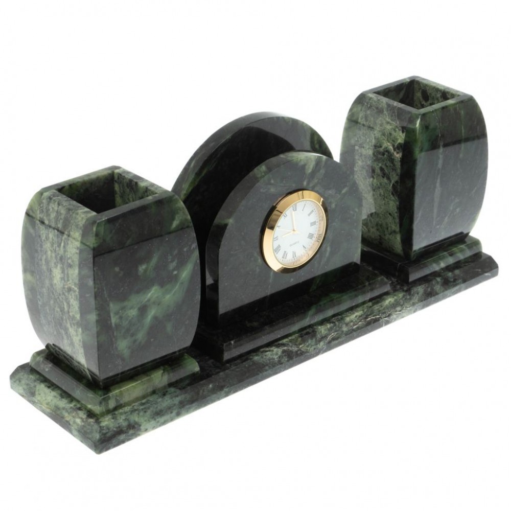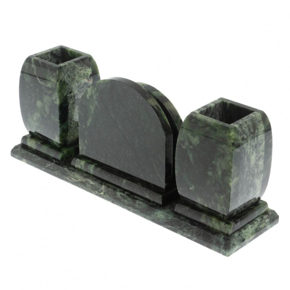 Настольные наборы из змеевика имеют стильный дизайн и вдобавок они изготавливаются вручную из натуральных и экологичных материалов.
