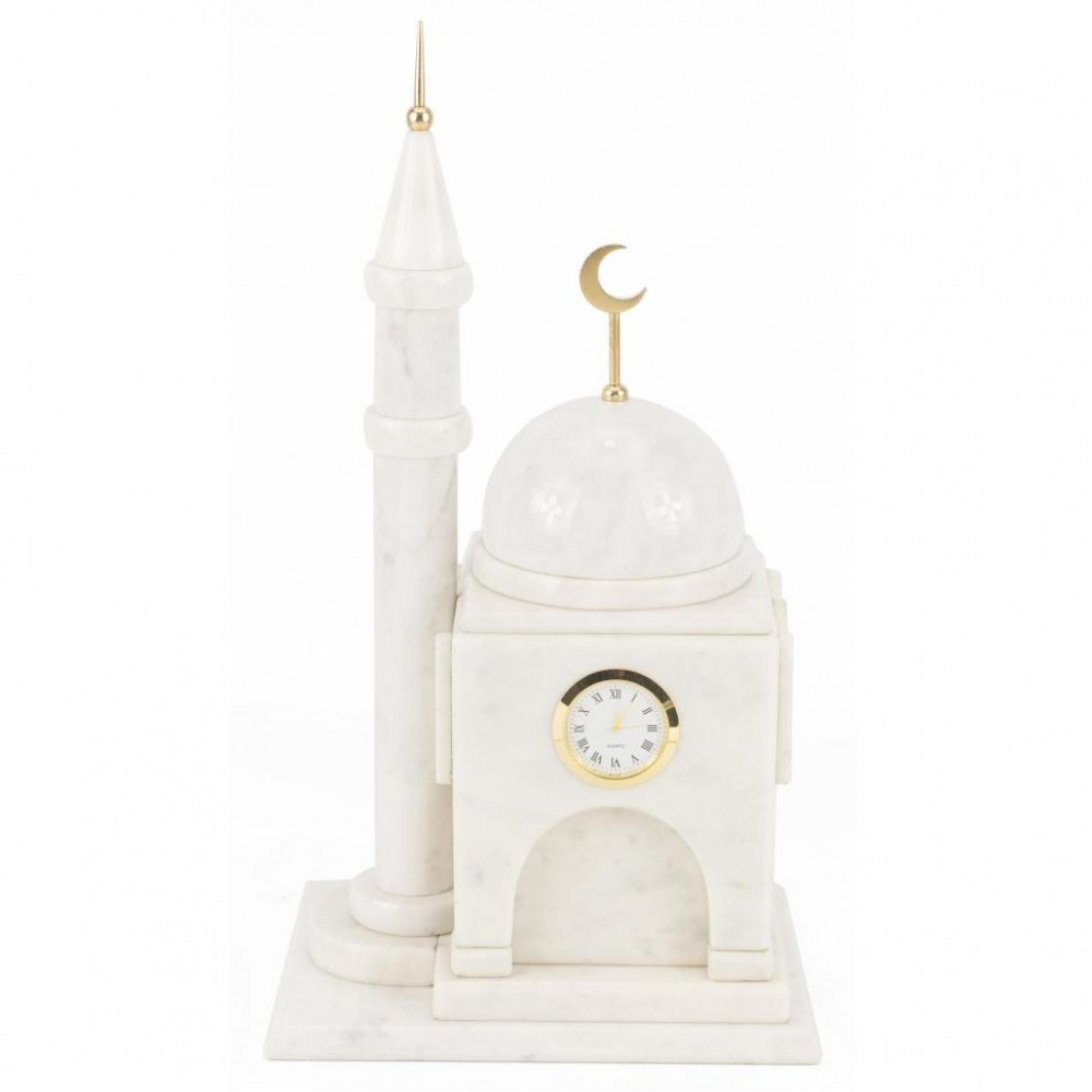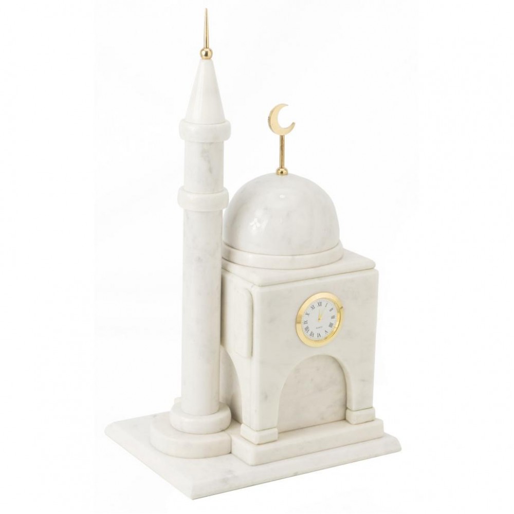 Часы "Мечеть" из белого мрамора размером 20х15х34,5 см и весом 5500 г.