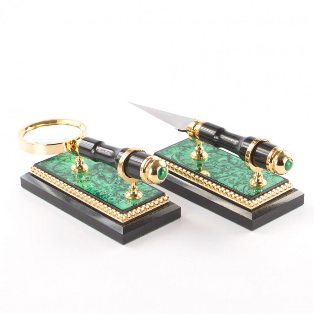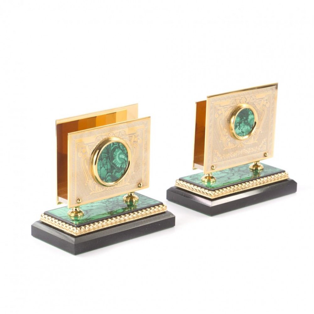Настольный набор из малахита станет отличным подарком руководителю. Этот аксессуар органично впишется в интерьер каждого кабинета, став удобным дополнением рабочего стола.