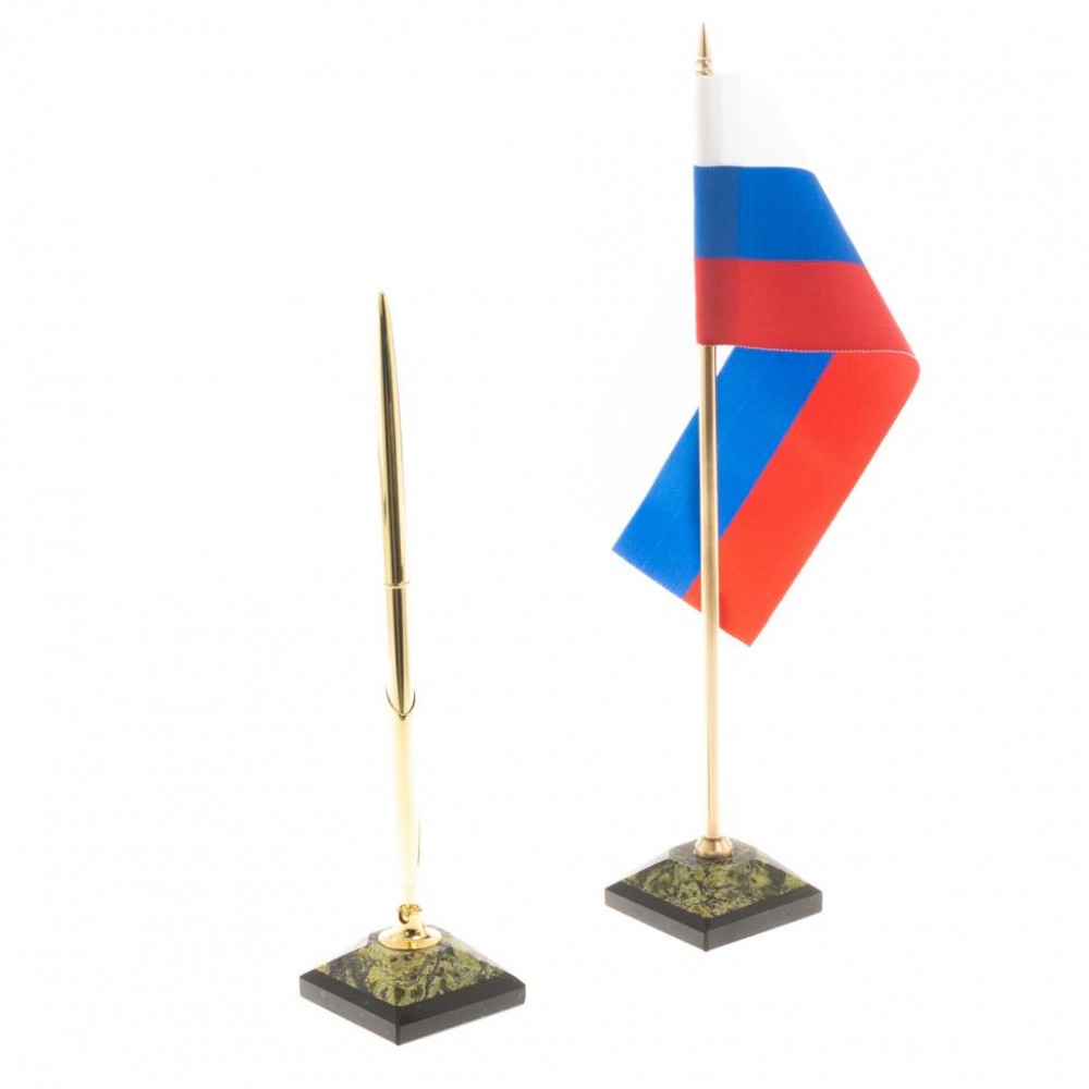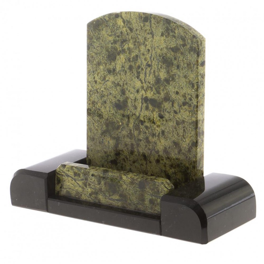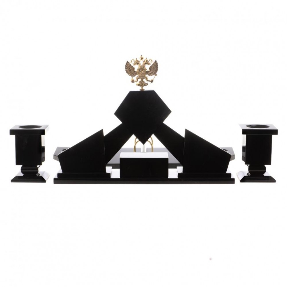 Письменный набор "Герб" с лотком для бумаг А4 и бюваром камень змеевик размером часы 40,5х9,5х31 см, календарница 26,5х15х3 см, лоток 31,5х24х7 см, бювар 80х42,5х1,5 см, карандашница 8х8х12 см, кубарик 11х11х5,5 см, подставка для телефона 15х5,5х11,5 см, флагшток 4,5х4,5х26 см, подставка под ручку 4,5х4,5х18 см и весом 15000 г.