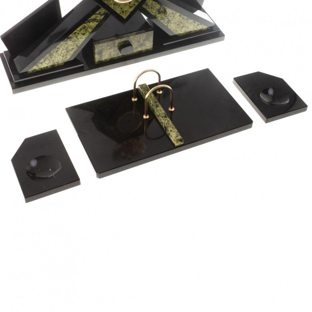 Настольные наборы из змеевика имеют стильный дизайн и вдобавок они изготавливаются вручную из натуральных и экологичных материалов.