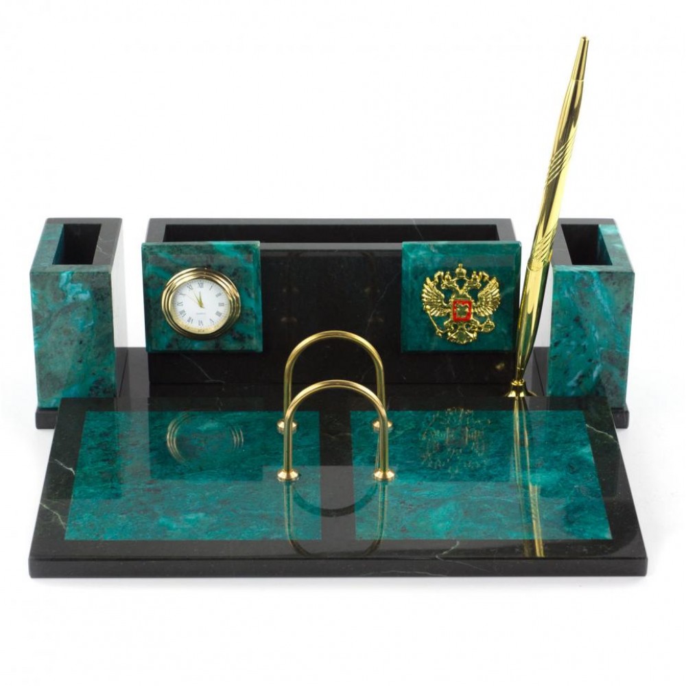 Письменный набор "Люкс" из змеевика размером 29,8х22,5х9,5 см и весом 3600 г.