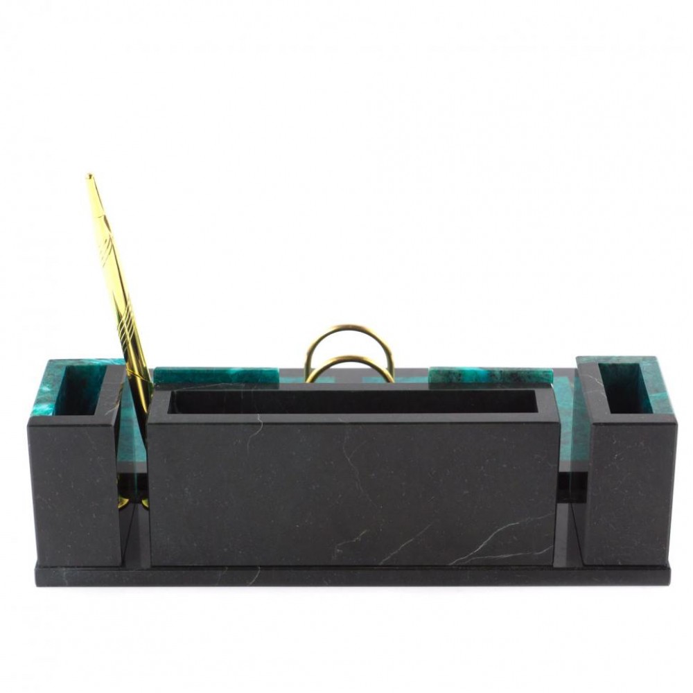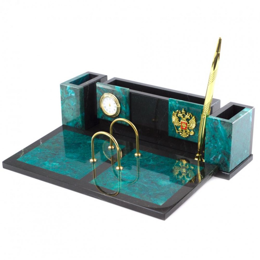 Настольные наборы из змеевика имеют стильный дизайн и вдобавок они изготавливаются вручную из натуральных и экологичных материалов.