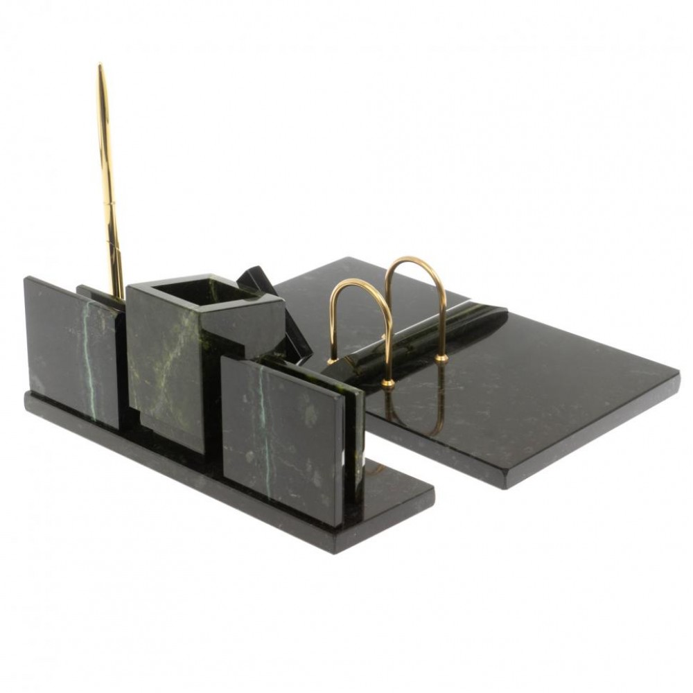 Настольные наборы из змеевика имеют стильный дизайн и вдобавок они изготавливаются вручную из натуральных и экологичных материалов.