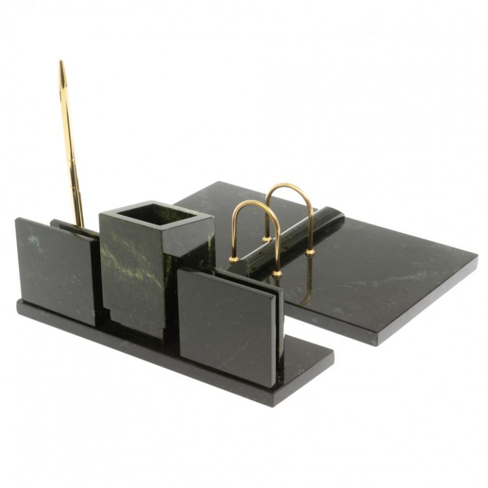 Настольные наборы из змеевика имеют стильный дизайн и вдобавок они изготавливаются вручную из безопасных и экологичных материалов.