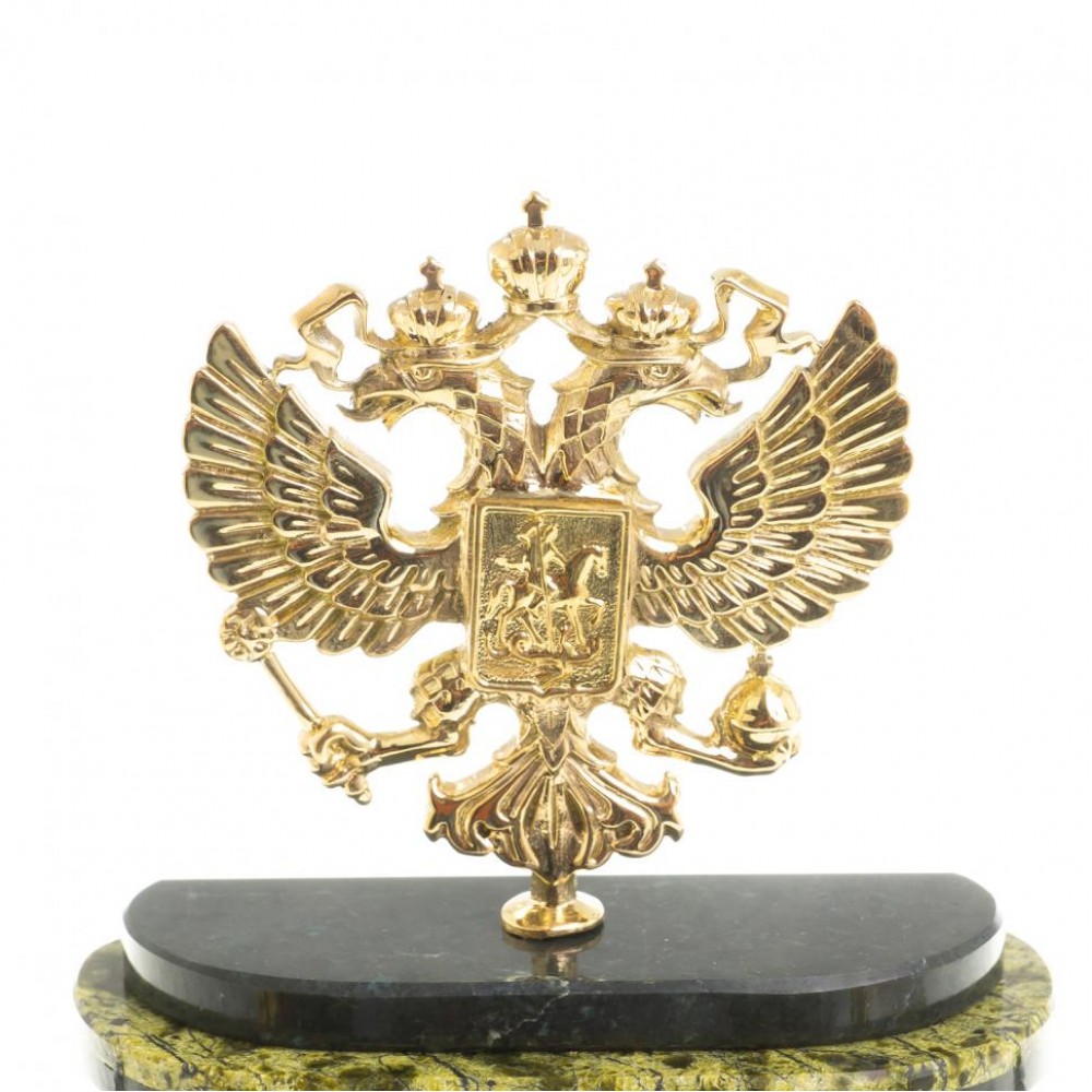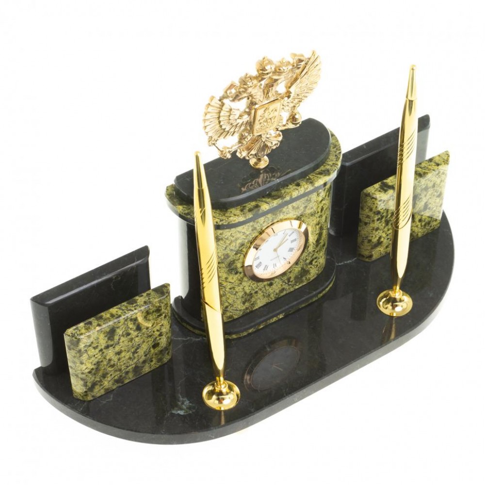 Письменный прибор "Герб РФ" из бронзы и змеевика размером 30х10х22 см и весом 2140 г.