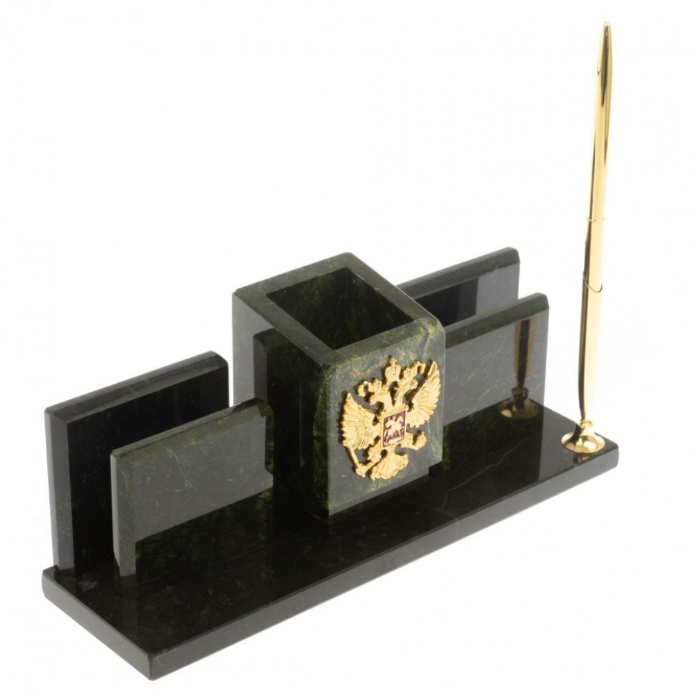 Письменный прибор "Менеджер" из черного змеевика с гербом размером 24х7х11 см и весом 1400 г.